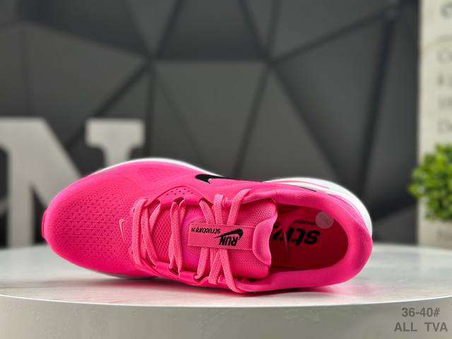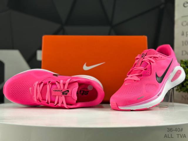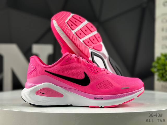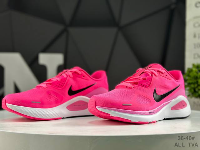 Nike Air Zoom Structure 26 Lightweight Running Shoes feature a breathable engineered mesh upper. The overall design is lightweight, comfortable, and breathable. The shoe's primary color is fuchsia, with a black Nike logo, creating a harmonious and minimalist look suitable for everyday wear. It features an Air Zoom unit in the forefoot and foam cushioning in the midsole. Product Code: Hj1101 601 Sizes: As shown in the picture.