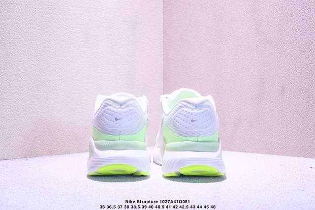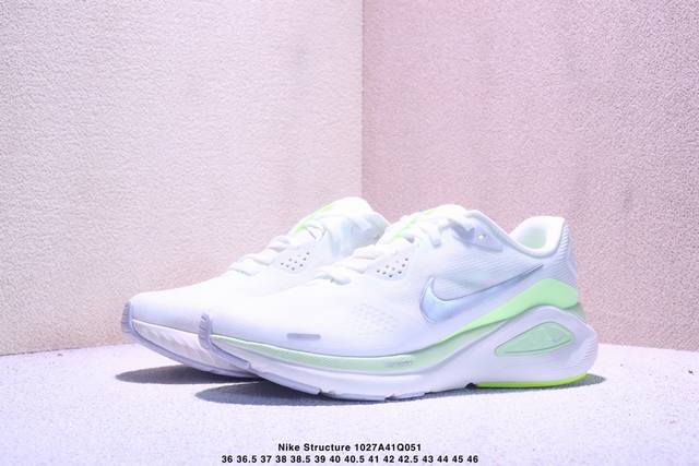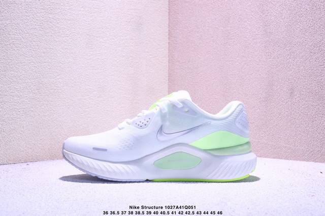 Nike Air Zoom Structure 26 Lightweight Running Shoes. The upper is made of breathable engineered mesh. The overall shoe is lightweight, comfortable, and breathable. The main color is fuchsia, with the Nike logo in black, creating a harmonious and minimalist style that makes everyday wear more fashionable. It features an Air Zoom unit in the forefoot and foam cushioning technology in the midsole. Style Code: Hj 1 103. Sizes: 36, 36.5, 37.5, 38, 38.5, 39, 40, 40.5, 41, 42, 42.5, 43, 44, 45, 46. Xm1027Q051