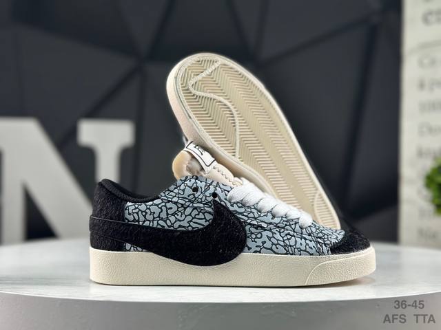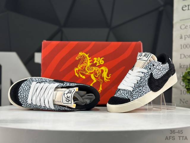 Nike Blazer Low '77 Jumbo, a limited edition for the Year of the Horse, featuring a newly upgraded and revamped classic Blazer design. The oversized Swoosh highlights a more assertive and trendy feel for the modern era, representing another improvement and upgrade to the classic. The oversized Swoosh design, combined with wide laces, aligns with current trends, while the rubber outsole incorporates a raised herringbone pattern for an outdoor feel. Product Code: Qd1471 131 Sizes: 36 36.5 37.5 38 38.5 39 40 40.5 41 42 42.5 43 44 44.5 45 Afs Tta