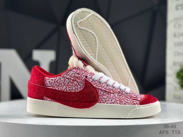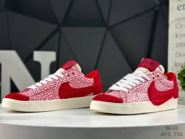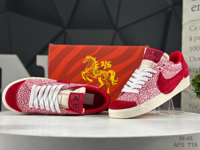 Nike Blazer Low '77 Jumbo, a limited edition for the Year of the Horse, featuring a newly upgraded and revamped classic Blazer design. The oversized Swoosh highlights a more assertive and trendy feel for the modern era, representing another improvement and upgrade to the classic. The oversized Swoosh design combined with wide laces aligns with current trends, while the rubber outsole incorporates a raised herringbone pattern for an outdoor feel. Product Code: Dq1470-142 Sizes: 36 36.5 37.5 38 38.5 39 40 40.5 41 42 42.5 43 44 44.5 45 Afs Tta