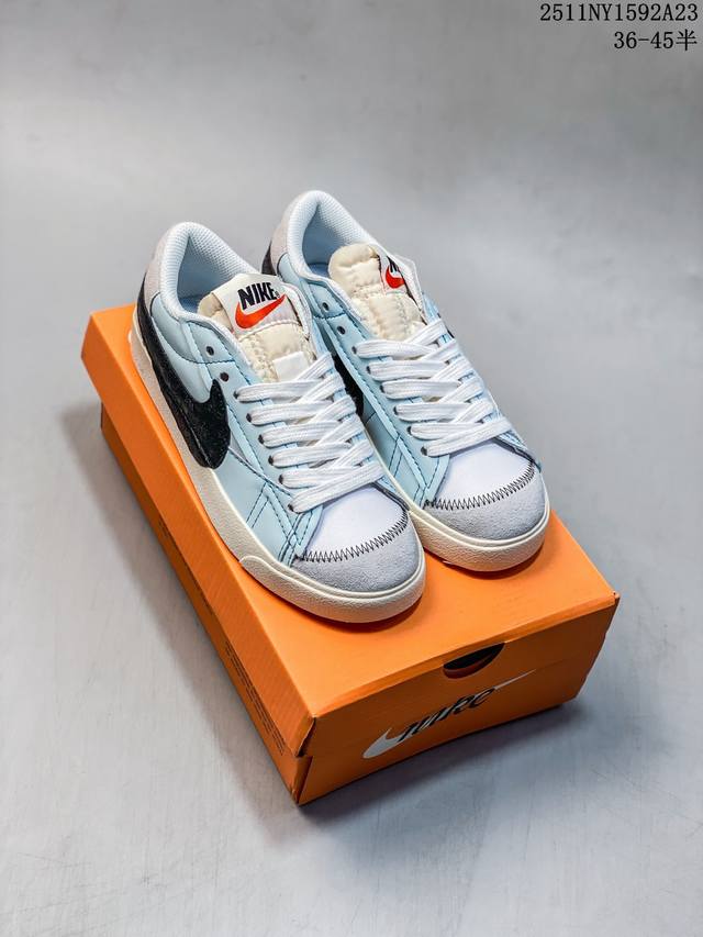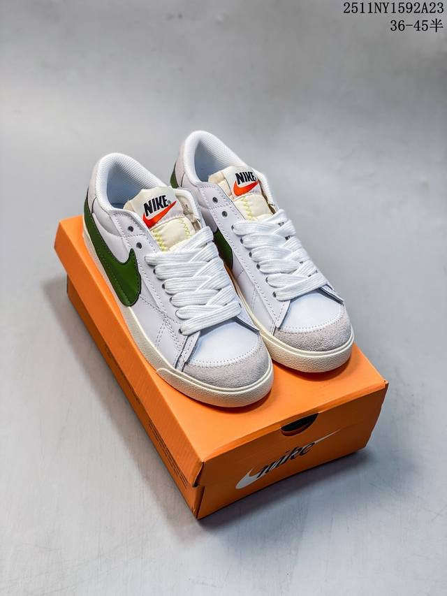 Nike Blazer Low '77 Jumbo - A versatile must-have. This newly revamped classic Blazer features a larger Swoosh for a more assertive, modern look, representing another upgrade to the classic design. The oversized Swoosh combined with wide laces aligns with current trends, while the rubber outsole incorporates a raised herringbone pattern for an outdoor feel. Sizes: 36 36.5 37.5 38 38.5 39 40 40.5 41 42 42.5 43 44 44.5 45 (Reference: 11Ny1592A23)