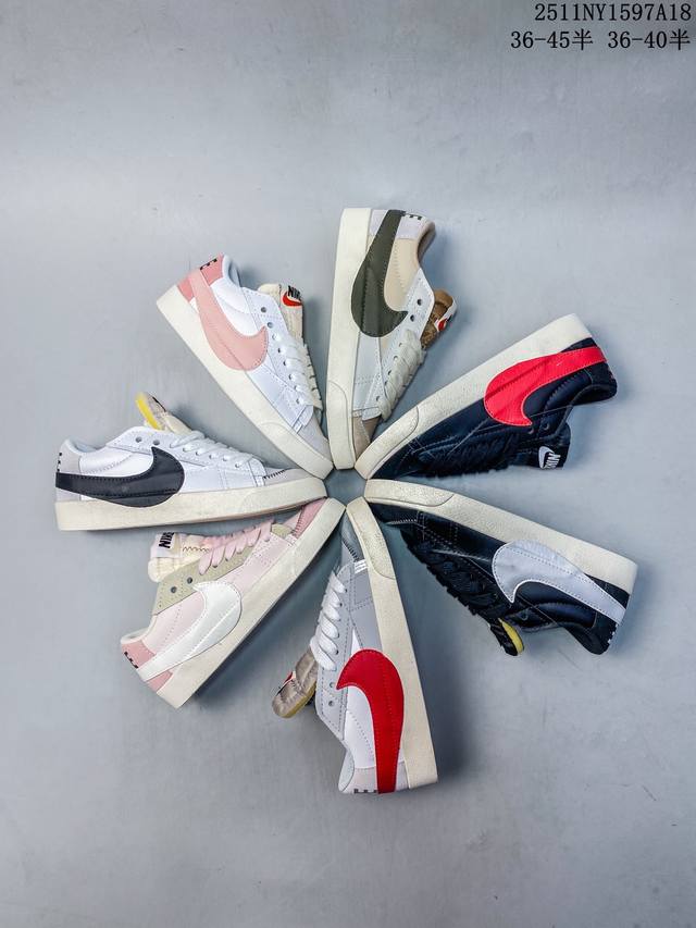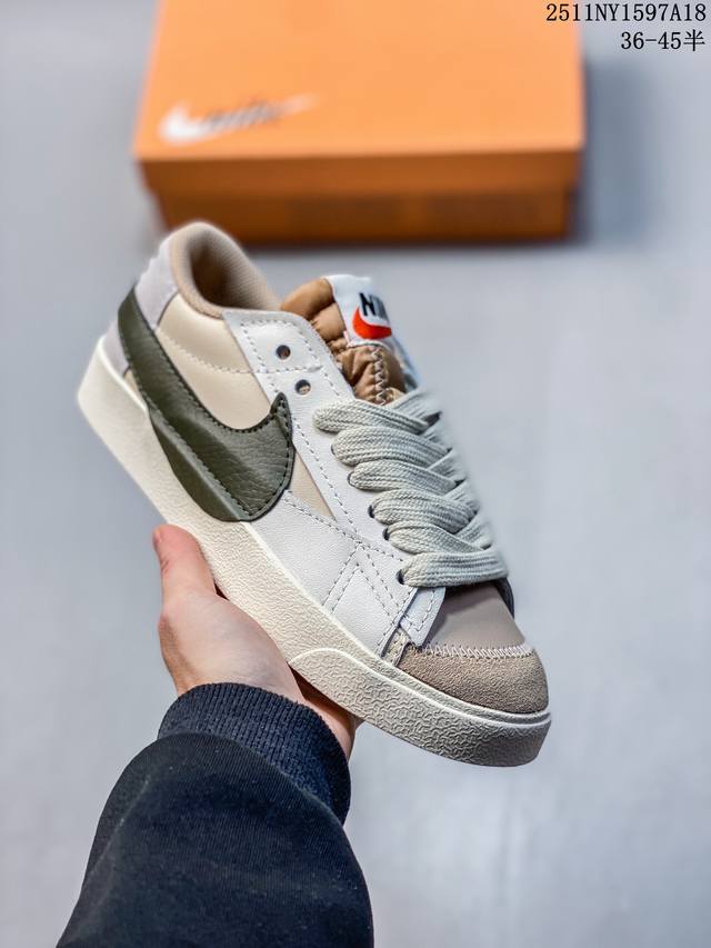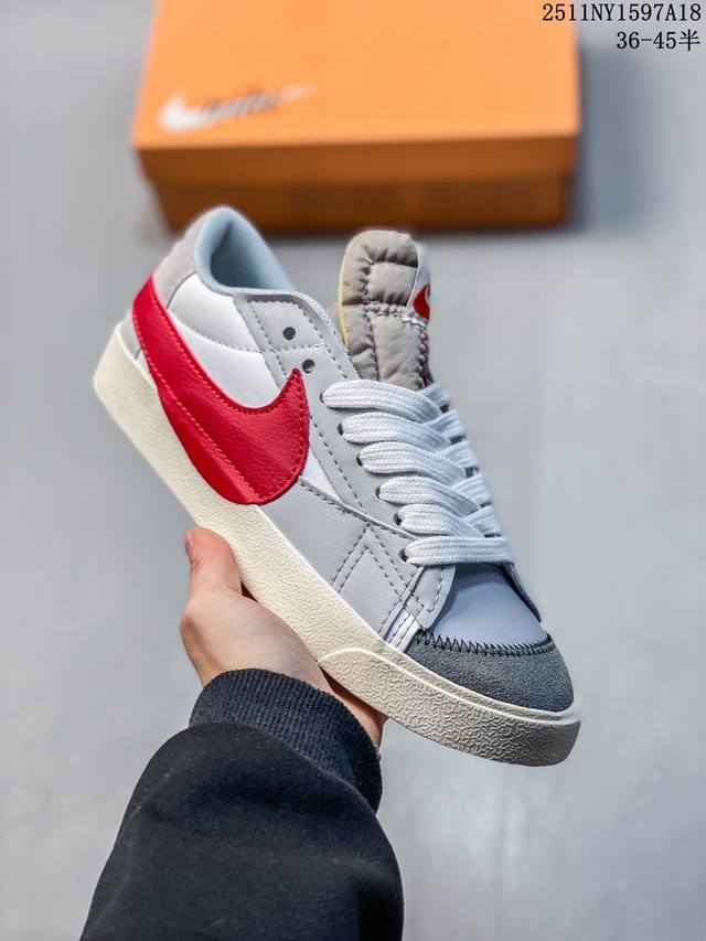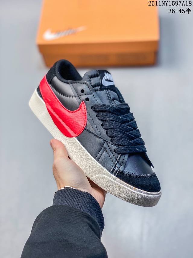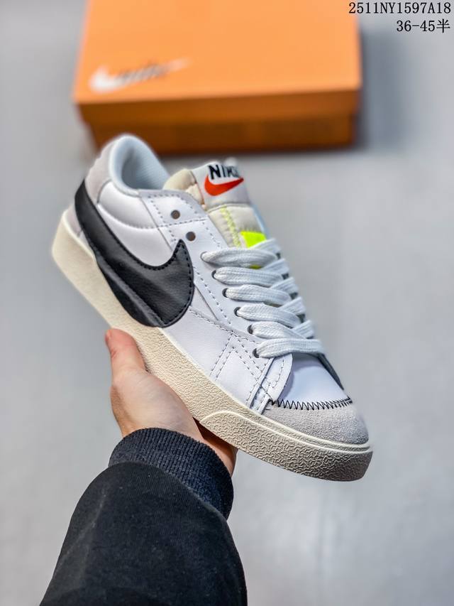 Nike Blazer Low '77 Jumbo - A versatile must-have. This newly revamped classic Blazer features a large Swoosh for a more assertive, modern look, representing another upgrade to the classic design. The large Swoosh combined with wide laces aligns with current trends, while the rubber outsole incorporates a raised herringbone pattern for an outdoor feel. Style Code: Dq1470-102 Sizes: 36, 36.5, 37.5, 38, 38.5, 39, 40 11Ny1597A18