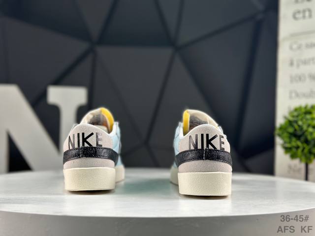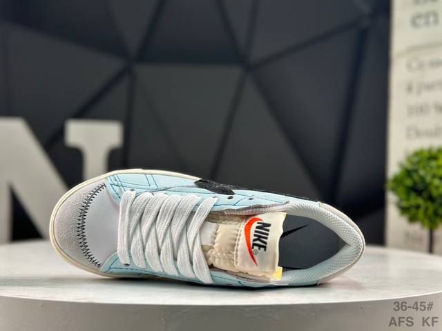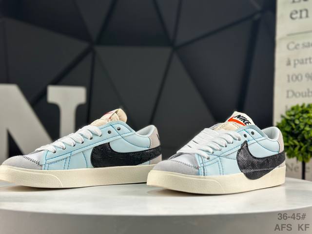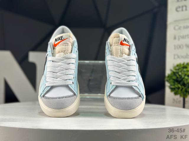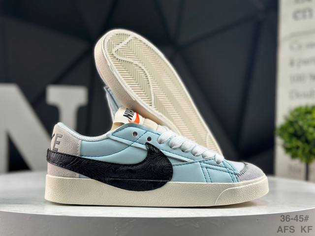Nike Blazer Low '77 Jumbo Trail Blazer: A refreshed and upgraded classic Blazer shoe with a larger Swoosh, highlighting a more flamboyant sense of style for the new era. This is another improvement and upgrade to the classic design. The larger Swoosh design combined with wide laces aligns with current trends. The rubber outsole incorporates a raised herringbone pattern, adding a touch of outdoor style. Product Code: Dv9122 131 Sizes: 36 37.5 38 39 40 41 42 43 44 45 Afs Kf DDD