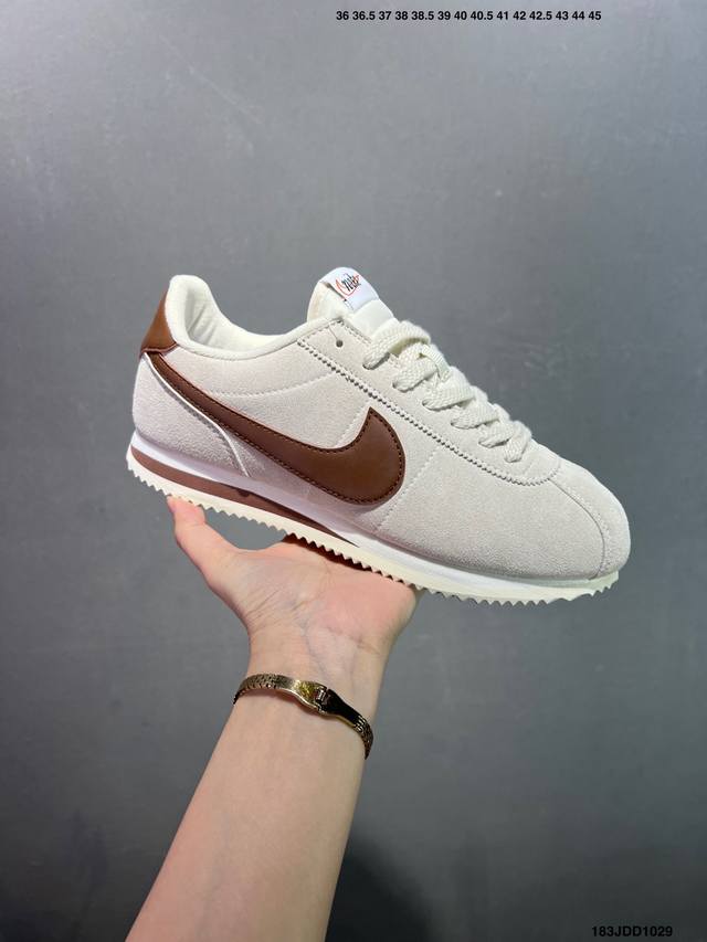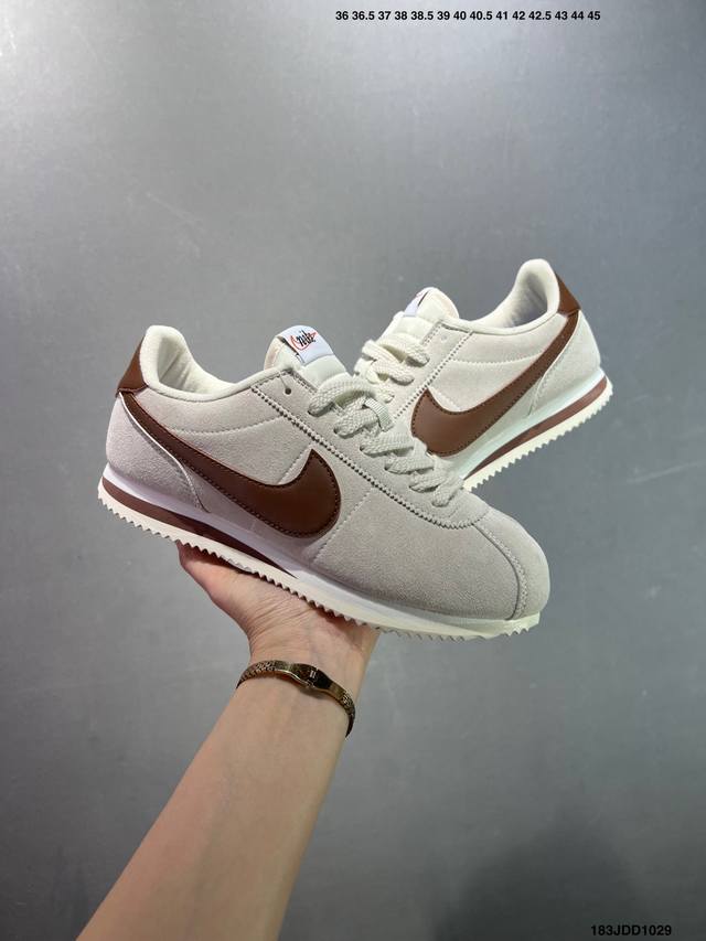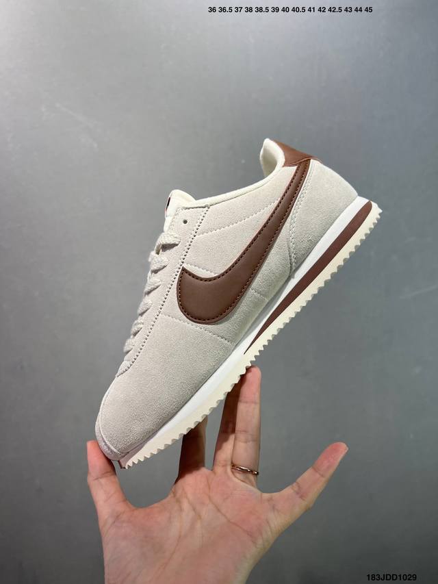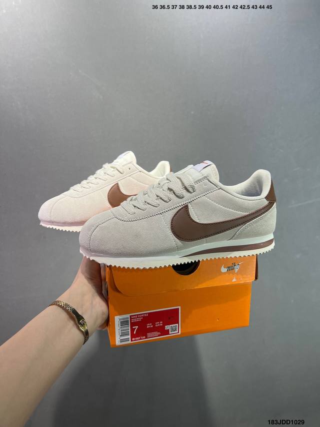Nike Classic Cortez, a classic lightweight and comfortable running shoe/sports shoe. The pure and persistent spirit of the Cortez has planted a seed in the hearts of a generation, regardless of whether they like its retro silhouette. Product Code: Dn1791-104. Sizes: 36, 36.5, 37.5, 38, 38.5, 39, 40, 40.5, 41, 42, 42.5, 43, 44, 45. Code: 183Jdd1029.
