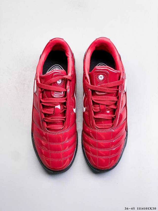 Nike collaborates with Maha Amsterdam to release a highly anticipated shoe: the Nike T90 Shox Magia. This football-inspired silhouette, originally launched in 2003, makes a stunning comeback with a futuristic edge and premium upgrades. The collaboration includes two unique colorways: one features a high-gloss black patent leather upper with a silver Shox cushioning column in the heel; the second is in metallic silver, adorned with striking iridescent accents and a deep blue Shox support. Both shoes feature a quilted upper, a mini Swoosh, and a co-branded Maha insole. These details perfectly blend early 2000s aesthetics with today's sneaker culture. Maha Amsterdam, known for its fusion of streetwear, athleticism, and a female perspective, helped modernize the silhouette: the original sole structure was retained, while materials and styling were subtly redesigned to echo Maha's design philosophy. The result is a shoe that is both sporty and suitable for everyday wear. DDD 1114101X30 DDD
