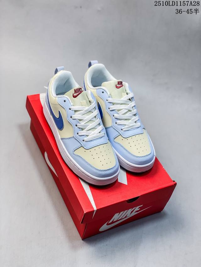 Nike Court Borough Low Low-top Versatile Breathable Casual Sports Sneakers for Men and Women. A classic and durable design that balances comfort and style, showcasing meticulous craftsmanship. The structural support and snug fit, combined with a retro basketball design, create an off-court all-star look. Style Code: Fv8-141 Sizes: 36 36.5 37.5 38 38.5 39 40 40.5 41 42 42.5 43 44 45 (Note: The last part, "10Ld1157A28," appears to be an unrelated product label and has been omitted from the translation.)