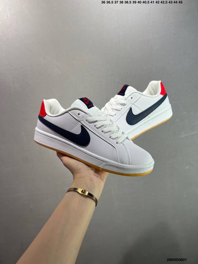 Nike Court Royale Low 2 College Series Casual Sports Leather Sneakers 833535 DDD Developed using the original Nike last and paper pattern, featuring a hard-grained split leather upper, an external Rb abrasion-resistant rubber outsole, and a classic campus colorway. Type: Men's/Women's Shoes DDD Sizes: 36 36.5 37.5 38 38.5 39 40 40.5 41 42 42.5 43 44 45 DDD Code: 296Nd0801 DDD