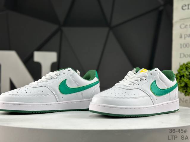 Nike Court Vision Lo Low-Top Sneakers feature a white, blue, and yellow upper. The white base makes the shoe very versatile, while the Swoosh logos on both sides are navy blue, and the Nike lettering on the heel is yellow, giving the shoe a cooler look. The yellow embroidered Nike Swoosh logo on the tongue is accented with navy blue, and the heel panel features laser-cut details. The tongue is made of mesh material for enhanced breathability. A white midsole is paired with a yellow rubber outsole, resulting in a classic white sneaker design that is very versatile. Product Code: Fn3447 131 Size: As shown in the picture Ltp Sa