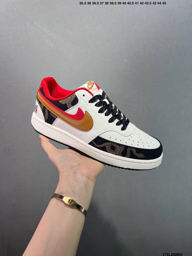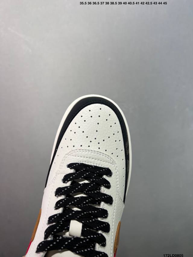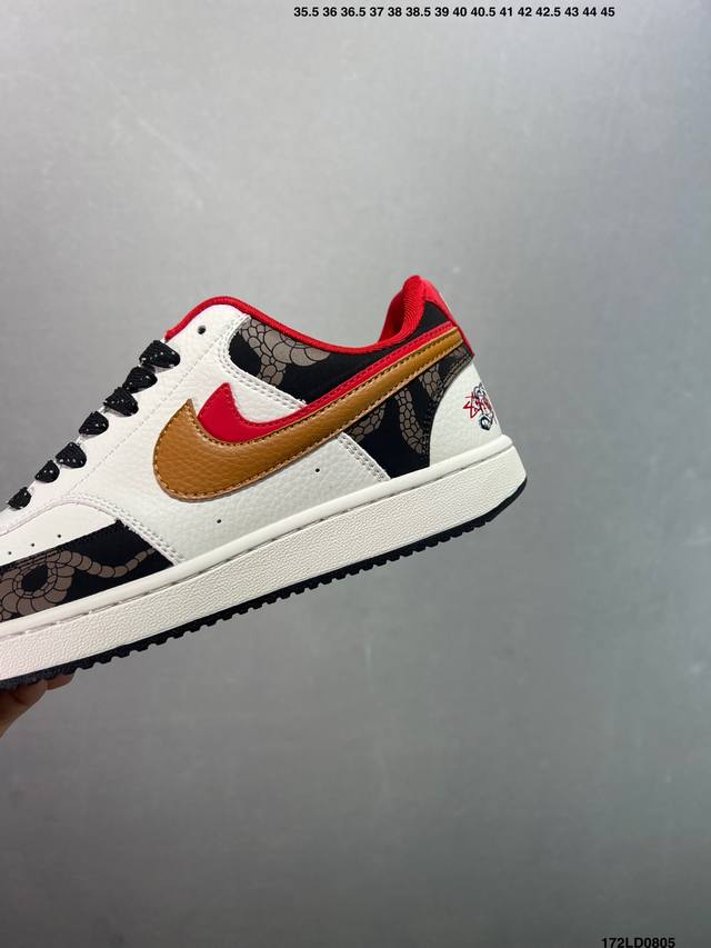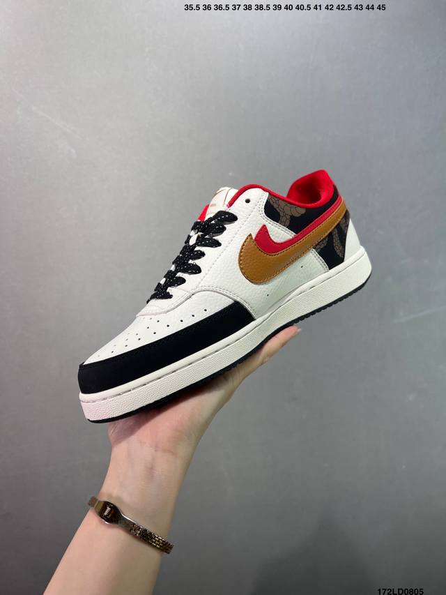Looking at this pair of white shoes from the front, medial, lateral, front and back, it seems to be a classic blend. A relatively comfortable and simple classic design, with a layered leather cut upper + a large Swoosh, and a sole of moderate thickness