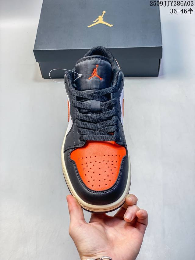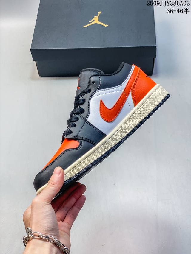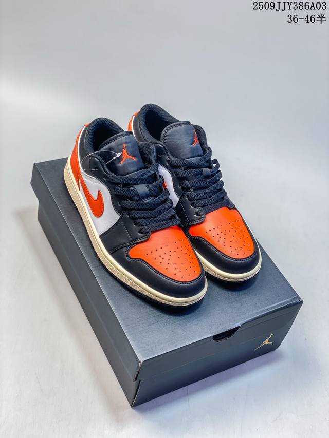 Nike Jordan Air Jordan 1 Low Aj1 Jordan 1 Jordan 1 generation Aj1 low-top retro cultural casual sports basketball shoes. Drawing design inspiration from the original 1985 model, this shoe reinterprets a simple and classic look that is familiar yet innovative. Stitching details and the embroidered Wings logo on the heel highlight the unique and exclusive style of the Jordan brand. The leather upper creates a superior sense of structure and durability. The sole is infused with Nike Air cushioning technology to create a lightweight cushioning feel, and the outsole is integrated with rubber for extraordinary traction, making it an ideal choice for everyday wear. The heel is decorated with the Wings logo, the toe is perforated, and the foam midsole is used.