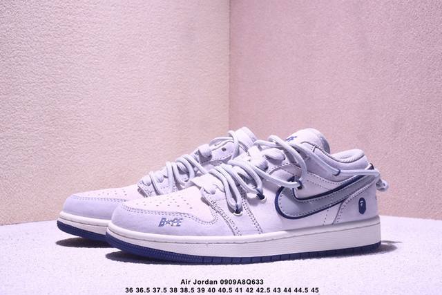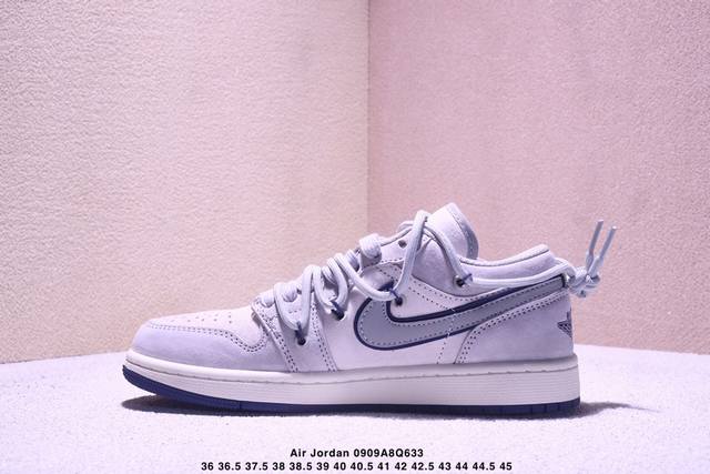 Nike Jordan Air Jordan 1 "Stussy Joint Gray-Blue Swoosh" High-end customized low-top retro shock-absorbing, non-slip, wear-resistant basketball shoes Custom shoe box Large factory pure original quality shipment Ultra-high cleanliness Leather cut cleanly without any burrs Perfect details
