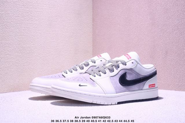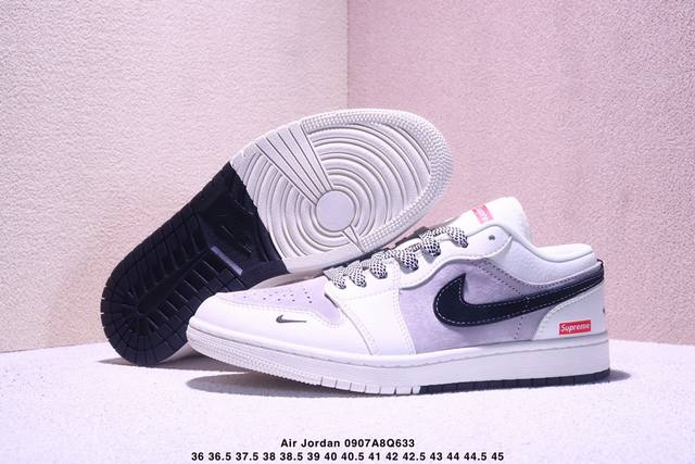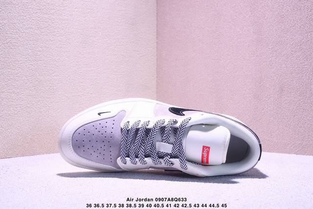 Nike Jordan Air Jordan 1 "Supreme Joint Double Black Swoosh" High-end customized low-top retro shock-absorbing, non-slip, wear-resistant basketball shoes Custom shoe box Large factory pure original quality shipment Super high cleanliness Leather material cut cleanly without any burrs Perfect details