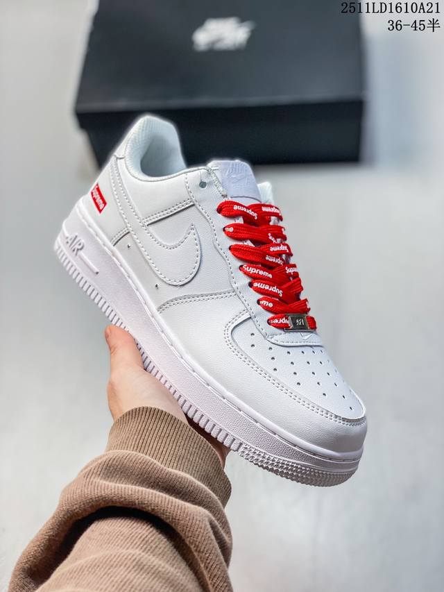 Nike, men's and women's shoes, authentic label with half sizes, made of hard cowhide leather upper, built-in full-length Air Sole cushioning. The most popular among sneaker enthusiasts is undoubtedly the officially licensed Supreme x Nike Air Force 1 Low 07 White, a classic low-top versatile casual sports shoe with a white and red logo. (Co-branded white and red logo Cu9225- DDD) Type: Men's and women's shoes DDD Sizes: 36 36.5 37.5 38 38.5 39 40 40.5 41 42 42.5 43 44 45 DDD 11Ld1610A21 DDD