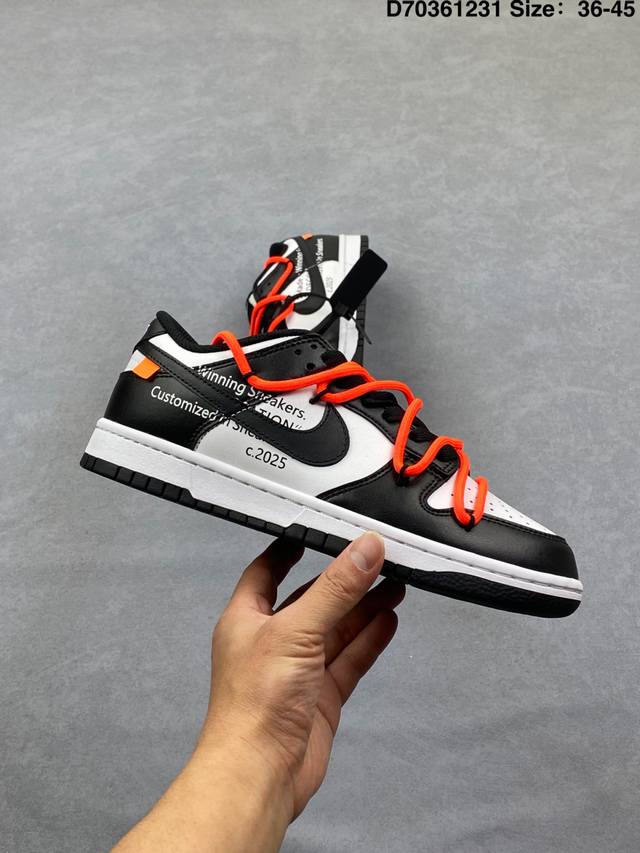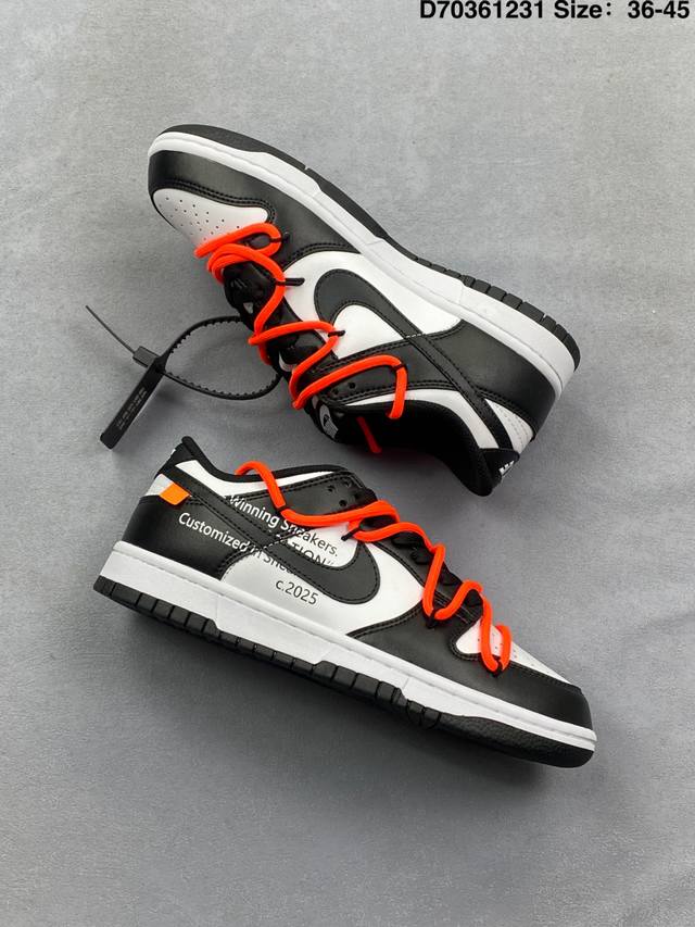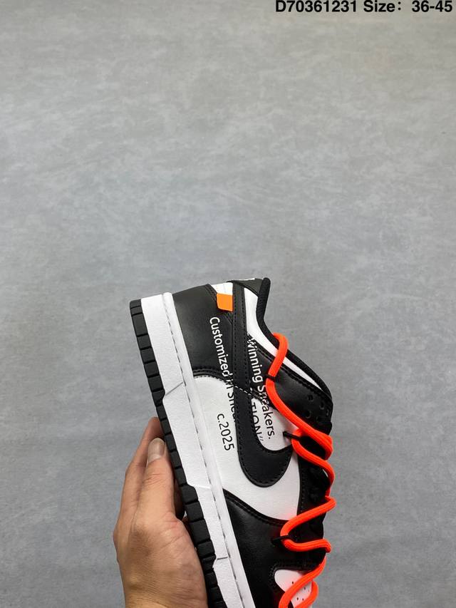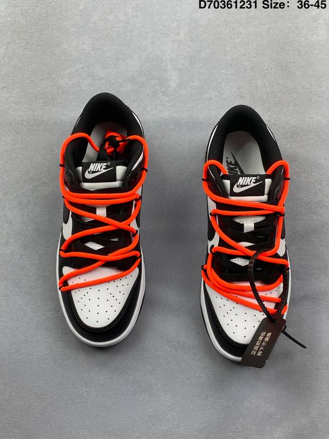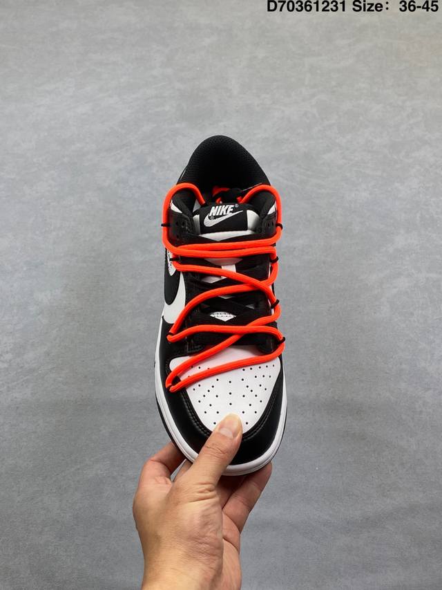 Nike Off-White X Futura X Nike Dunk Low Three-Way Collaboration Orange and Black Deconstructed# This collaboration features an orange and black color scheme, with a design style similar to previously revealed three-way collaborations, but with a solid color scheme. The double lacing system continues this year's signature style, paired with bright pink laces. While maintaining the street style of the Dunk SB Low, Virgil Abloh's strong deconstructionist approach makes this shoe more in line with the aesthetics of modern young people! Style Code: Dd1391-100 Sizes: 36