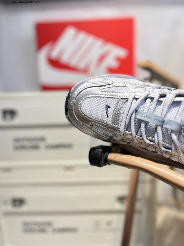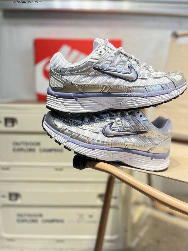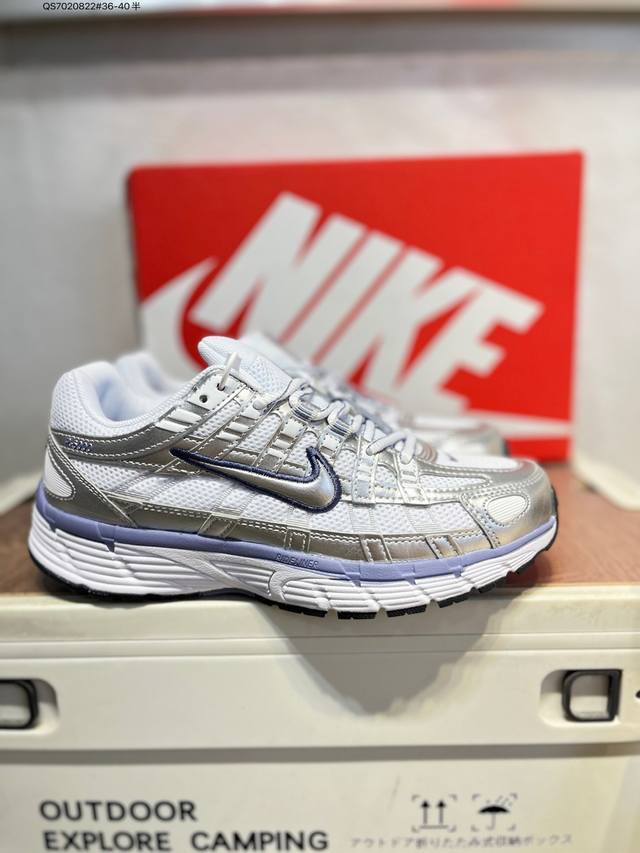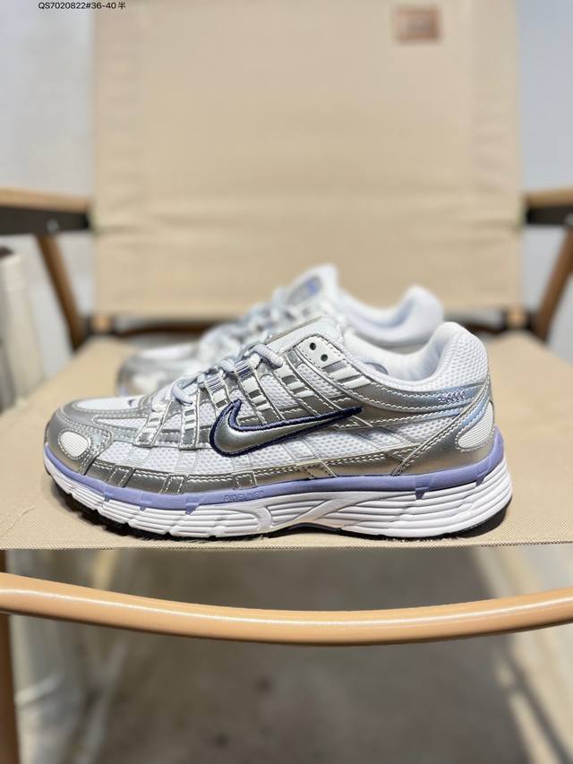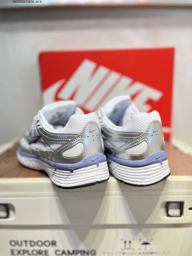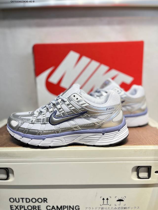 Nike P-6000 Laser Blue Retro Tech Personalized Sports Dad Shoes. The shoe features a crisscross overlay on the upper, reminiscent of 1990s running shoes, while a cushioned insole provides a comfortable walking experience. Bv1021 Qs7020822#36-40 Half DDD