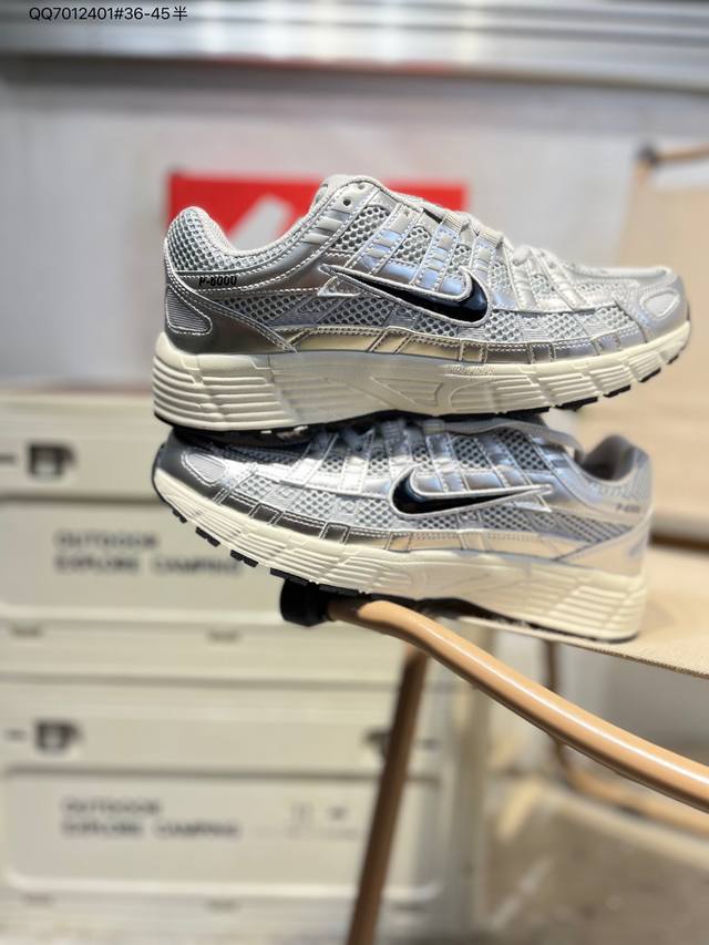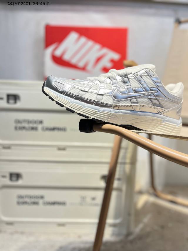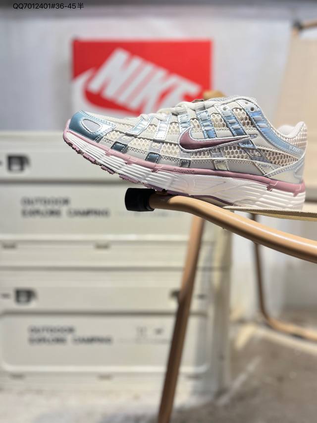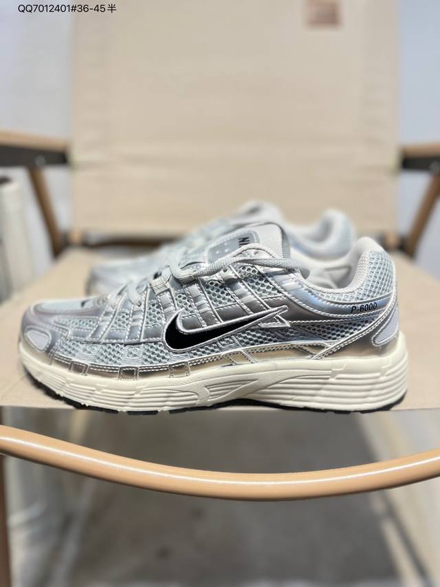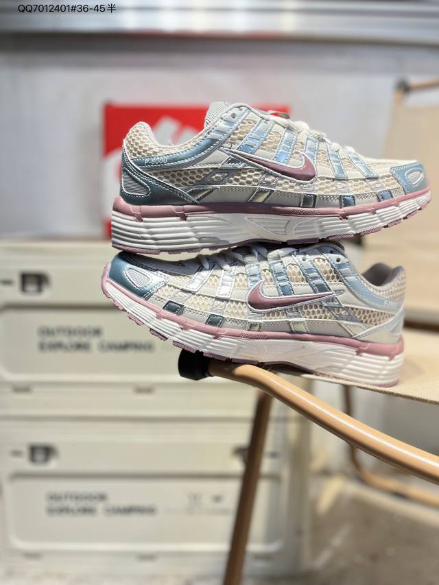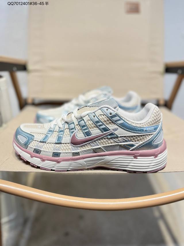 Nike P-6000 Laser Blue Retro Tech Personalized Sports Dad Shoes. The shoe features a crisscross overlay on the upper, reminiscent of 2000s running shoes, while a cushioned insole provides a comfortable walking experience. If2621 Qq7012401#36-45 Half DDD
