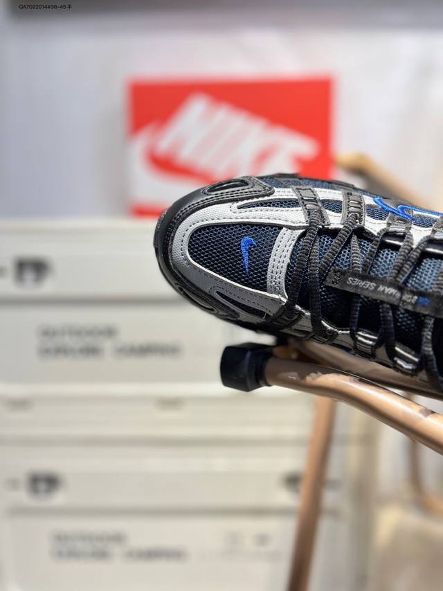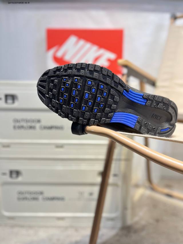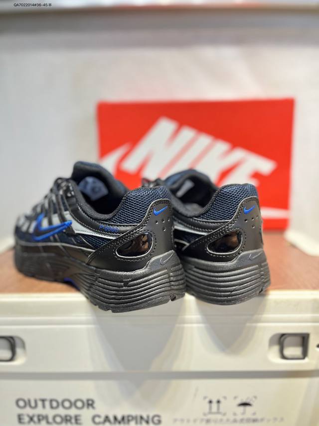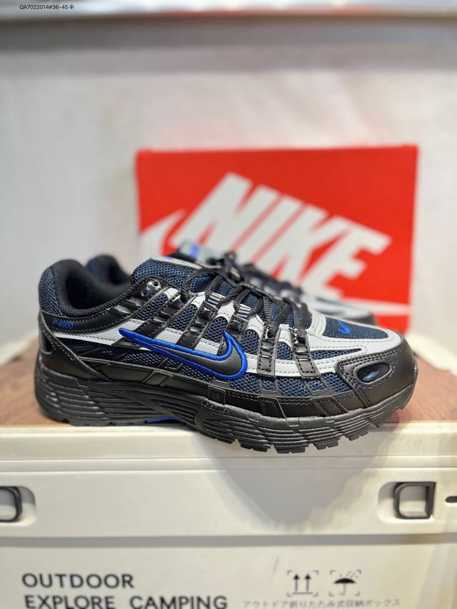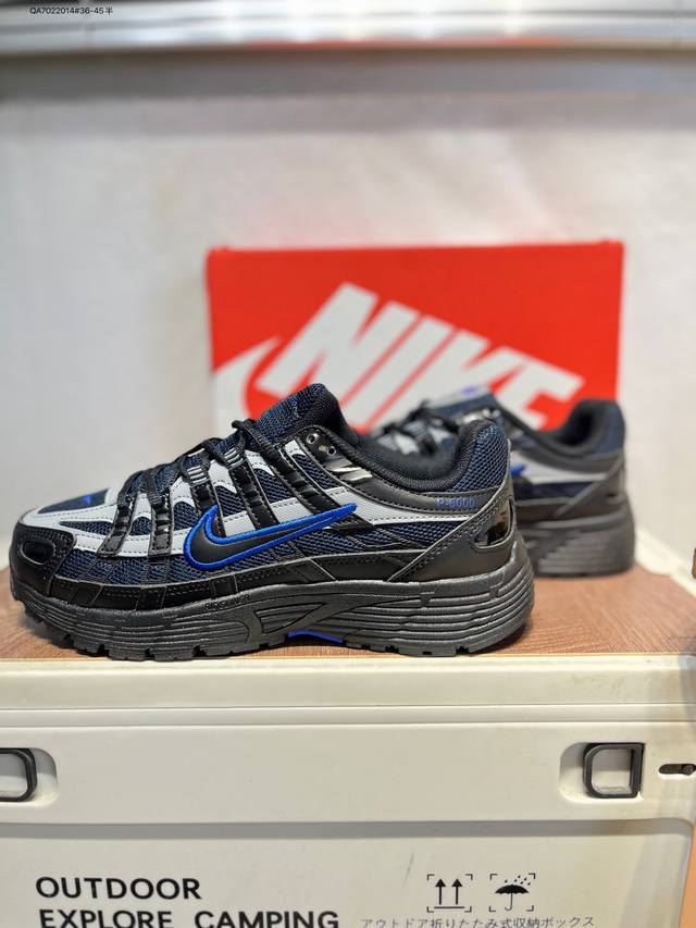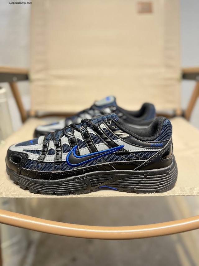 Nike P-6000 Laser Blue Retro Tech Personalized Sports Dad Shoes. The shoe features a crisscross overlay on the upper, reminiscent of 2000s running shoes, while a cushioned insole provides a comfortable walking experience. If6199 Qa7022014#36-45 Half DDD
