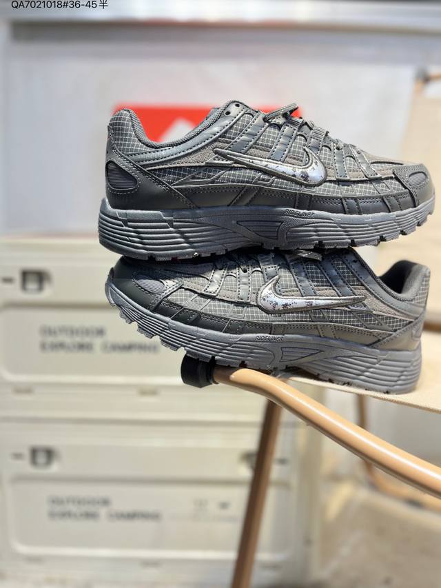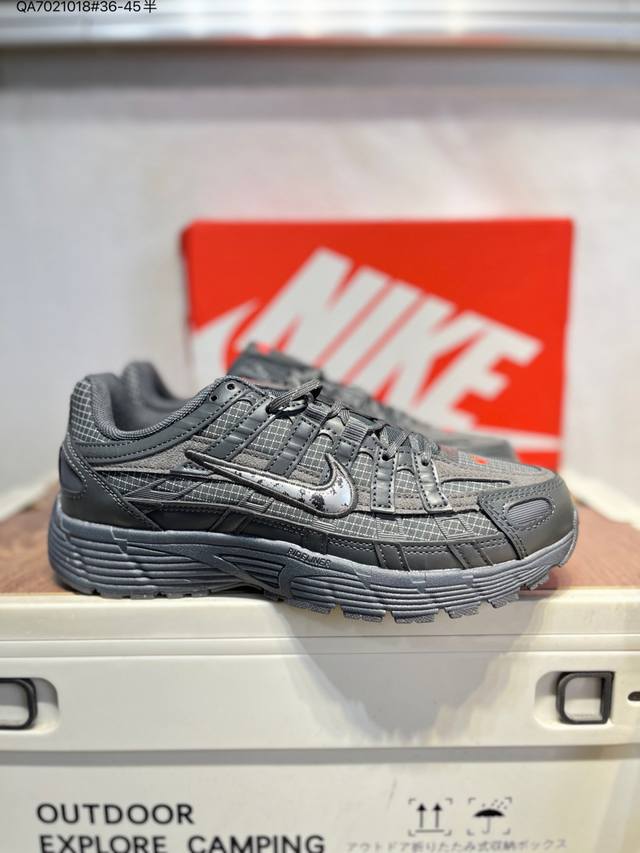 Nike P-6000 Laser Blue Retro Tech Personalized Sports Dad Shoes. The shoe features a crisscross overlay on the upper, reminiscent of 2000s running shoes, while a cushioned insole provides a comfortable walking experience. Im6767 Qa7021018#36-45 Half DDD