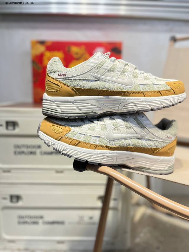 Nike P-6000 Laser Blue Retro Tech Personalized Sports Dad Shoes. The shoe features a crisscross overlay on the upper, reminiscent of 1990s running shoes, while a cushioned insole provides a comfortable walking experience. Iq1120 Qe7021821#36-45 Half DDD
