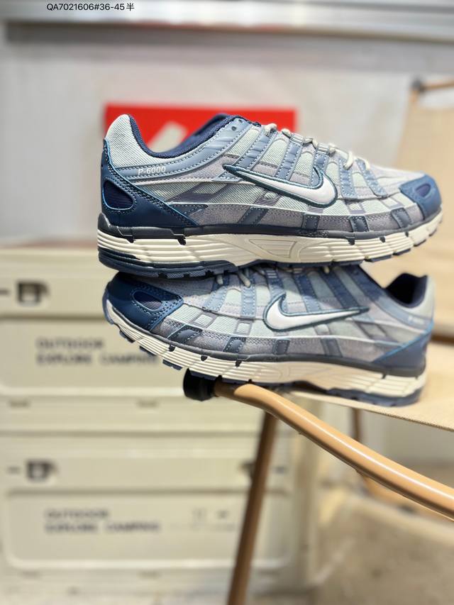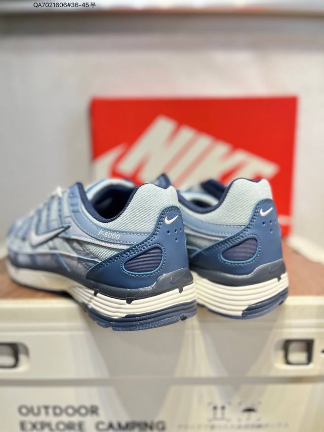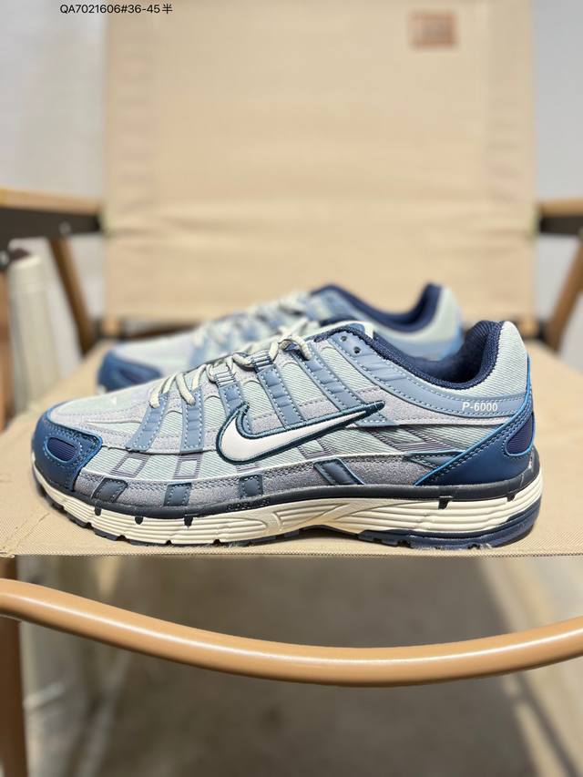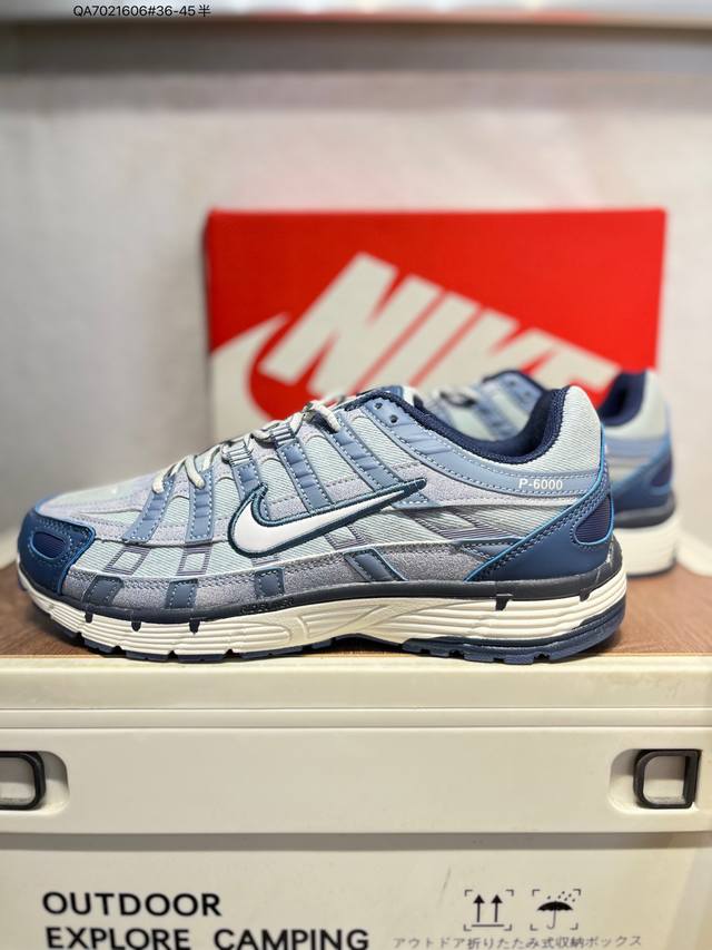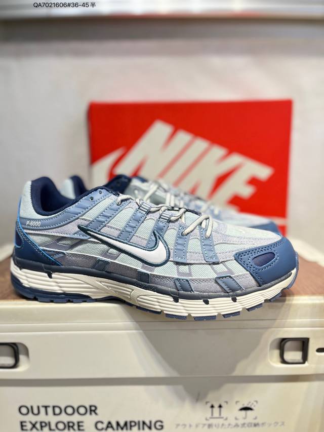 Nike P-6000 Laser Blue Retro Tech-Style Dad Shoes. The shoe features a crisscross overlay on the upper, reminiscent of 2000s running shoes, while a cushioned insole provides a comfortable walking experience. Ih3646 Qa702 6# 36-45 Half