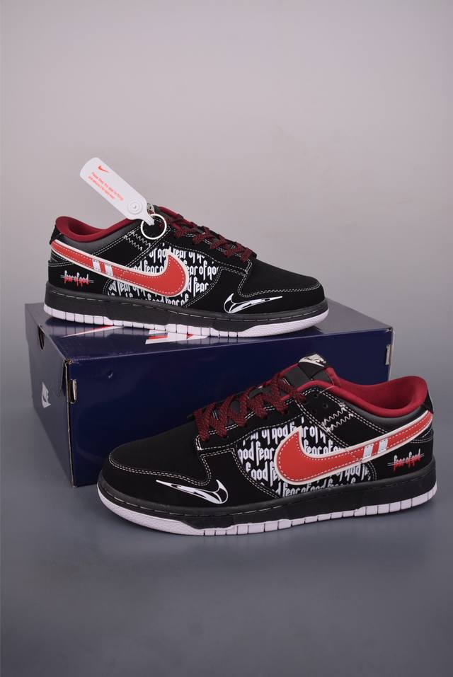Nike SB Dunk Low, Black/Red Lettering. Highly recommended from a top-tier manufacturer. Made with original top-grain materials and a unique steam-drying process for a superior visual and tactile experience. High-quality factory-direct shipping with impeccable cleanliness. Features include clean, seamless leather cutting with no rough edges and perfect details. Official product number: Kk1333 0512722. Sizes: 36, 36.5, 37.5, 38, 38.5, 39, 40, 40.5, 41, 42, 42.5, 43, 44, 45.