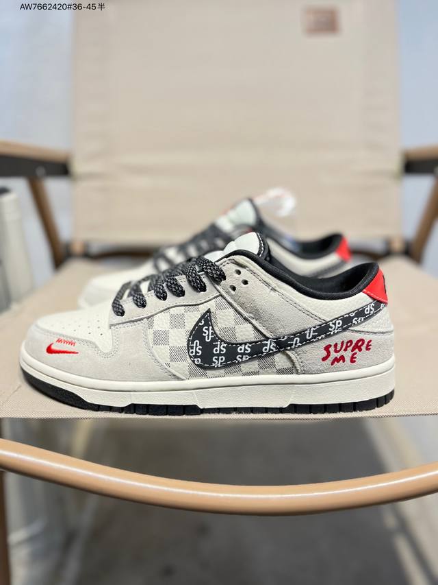 Nike SB Dunk Low, Highly Recommended New Colorway from Major Factory. Made with original top-grain materials and featuring exclusive steam-drying processing. Offers a superior visual and tactile experience. High-quality factory-direct shipping with excellent cleanliness. Features include electro-embroidery, clean leather cutting with no rough edges, and perfect details. Sd8888 Aw7662420# 36-45.5.