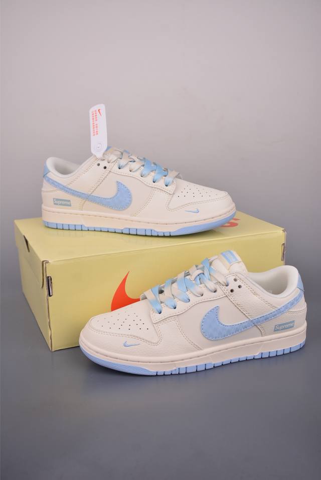 Nike SB Dunk Low Supreme Collaboration. Highly recommended by a top-quality manufacturer. Made with original top-grain materials and a unique design using steam distillation, resulting in a superior visual and tactile experience. High-quality factory-direct shipping with impeccable cleanliness. Features include clean, seamless leather cutting with no rough edges and perfect details. Official product code: J 0122226. Sizes: 36, 36.5, 37.5, 38, 38.5, 39, 40, 40.5, 41, 42, 42.5, 43, 44, 44.5, 45.