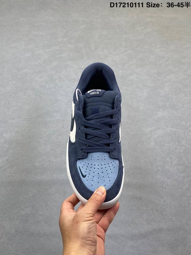 Nike SB Force 58 Skateboard Shoes. This is a piece that brings cutting-edge innovation to the streets, featuring a vulcanized cup sole for excellent durability and flexibility. Using soft leather and canvas panels with ventilation holes in the finish, it incorporates classic basketball style throughout. Style Code: Dv5477 DDD Sizes: 36-45? DDD Code: D17210111 DDD