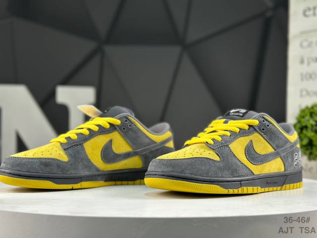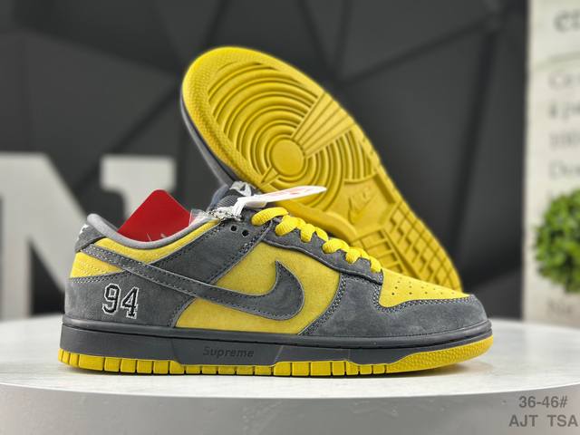 Nike Supreme X Nike Dunk SB Low. This shoe features an embroidered "94" on the heel, commemorating the brand's founding year. The brand's iconic logo is also etched onto the sidewall of the midsole. The insoles retain the standard red surface, with the Nike SB logo on each insole, and the Supreme logo spanning both insoles. Style Code: Hq8487-300 Size: As shown in the picture. Ajt Tsa