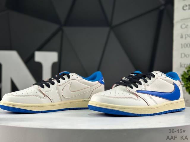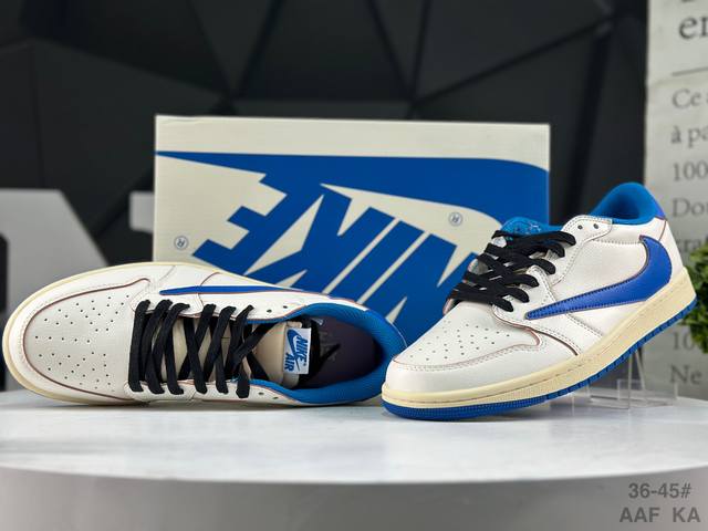 Nike Travis Scott X Fragment Design X Air Jordan AJ1 Low Og Sp Tri-brand collaboration Lightning Swoosh 2.0 Low Top DDD Style Code: Dm7866-104 DDD Size: As shown in the picture Aaf Ka DDD