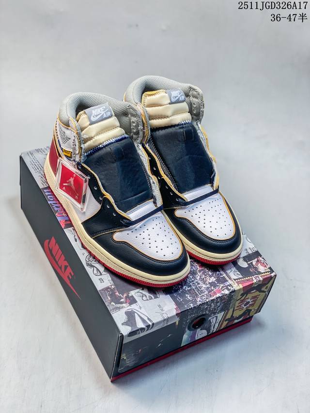 Nike Union X Air Jordan 1 Retro High PK Nrg High-Top AJ1 Classic Retro Sports Basketball Shoes. Los Angeles brand Union and Jordan collaborated on the AJ1 collaboration. Recently, Los Angeles fashion boutique Union La and Jordan Brand teamed up to bring us the Union La X Air Jordan 1 High. The shoe features a deconstructed, color-blocked, and patchwork design. The upper combines the "Storm Blue" colorway with the "Banned" Black Friday colorway. Product Code: Bv1300-146 Sizes: 36 36.5 37.5 38 38.5 39 40 40.5 41 42 42.5 43 44 45 46 47 Code: 100124 11Jgd326A17