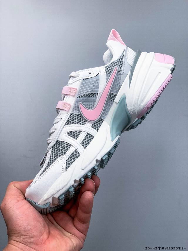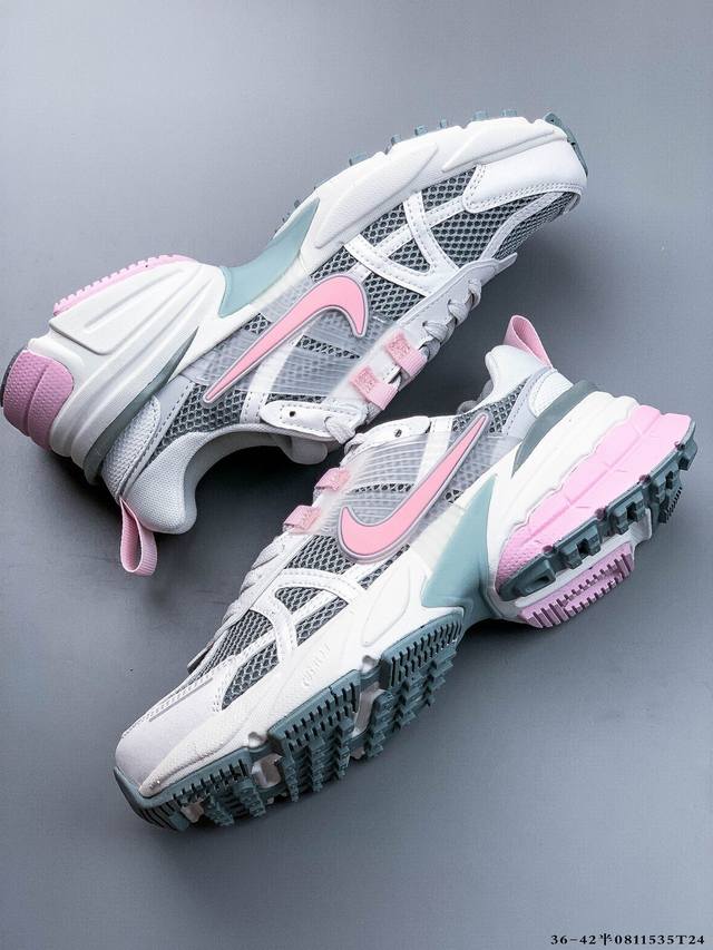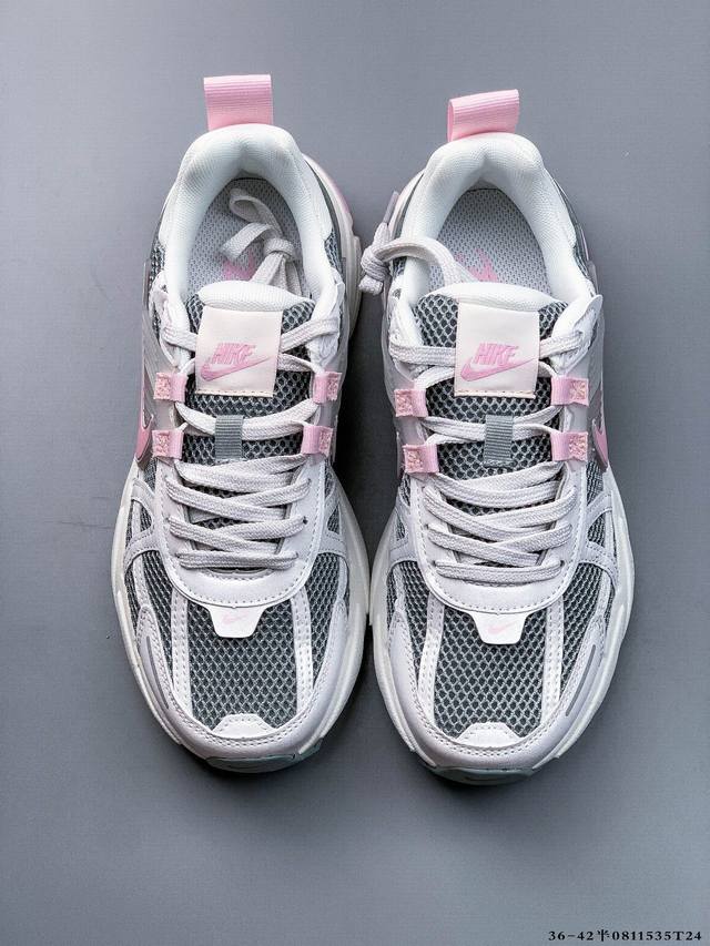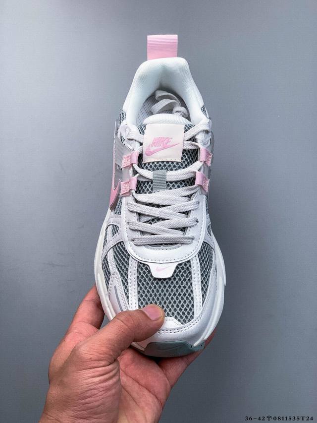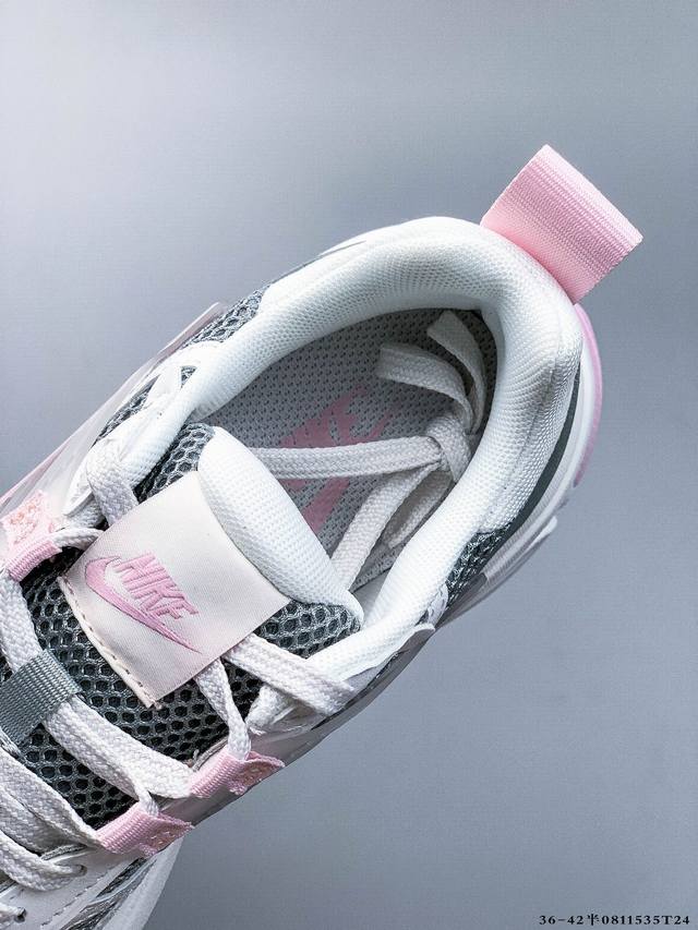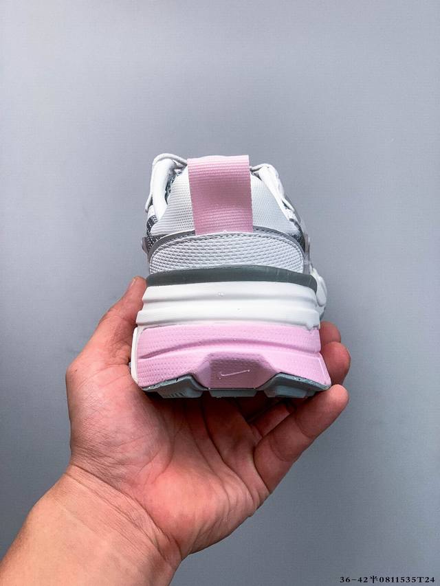 Nike V2K Run, a new versatile casual running shoe with a retro aesthetic, features a breathable, compact mesh upper that provides excellent fit. Chrome details on the side Swoosh and toe cap add a touch of class. Bill Bowerman's portrait is printed on the insole for added detail. The midsole features a unique distressed effect, and the black outsole accentuates the shoe's retro aesthetic. 0811535T24