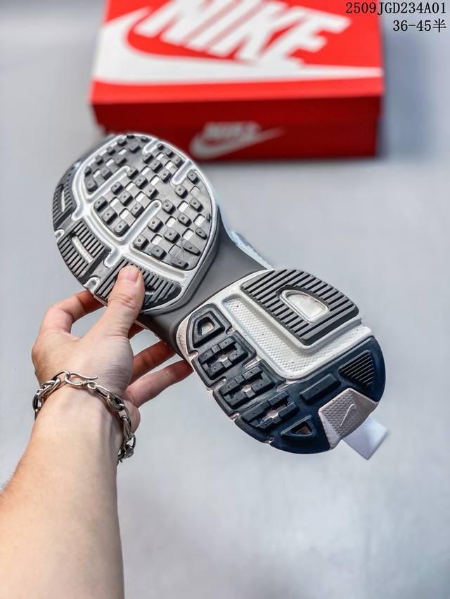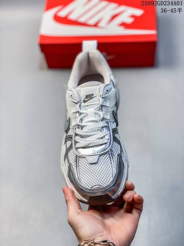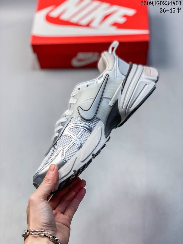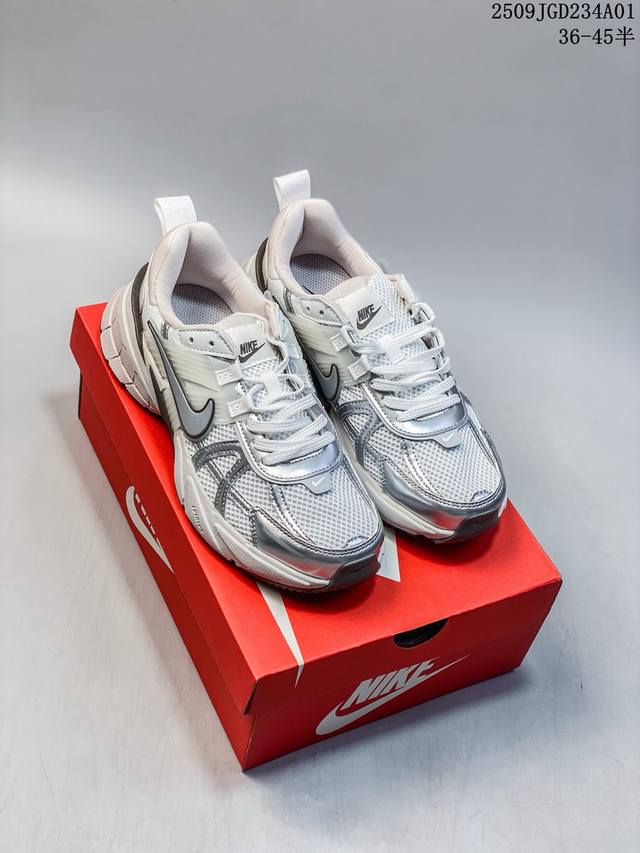 Nike V2K Run Shock-Absorbing, Anti-Slip Retro Low-Top Running Shoes. These super-popular retro running shoes feature a space leather and breathable mesh upper, a four-layer composite soleplate with embedded TPU reinforcements, a double-layer Md foam midsole, and a non-slip rubber outsole. Retro fashion has been trending recently, with styles like the Vomero 5 and Nike Initiator becoming incredibly popular. Nike's V2K Run Runtekk, a perfect alternative to the Balenciaga 3XL, is also a sought-after shoe among fashionistas. The shoe features a Peak White colorway, mixed with glossy metallic accents. The translucent plastic accents on the upper are inspired by the classic Nike Vomero 5, creating a rich, layered look. Furthermore, the foam midsole and chunky heel counter, imbued with a vintage aesthetic, ensure comfort and enhance the overall look.