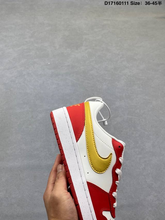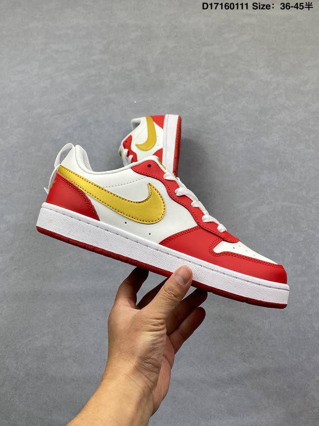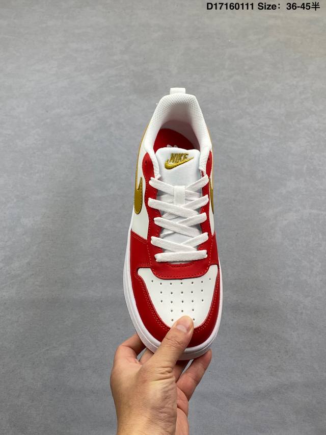Nike Women's Court Borough Low Sneakers. 1. The leather upper combined with a mesh tongue provides stable support and improved breathability while maintaining a superior appearance and texture. The elastic insole is durable, comfortable, and enhances cushioning. 2. The Nike Court is also a relatively cost-effective shoe from Nike. The Court's silhouette is similar to the AJ1 Low, and the sole is similar to the Af1, but there are differences due to different materials and positioning. It's a good choice in terms of value. 3. This shoe features a twist point design on the outsole for smooth starts and stops and flexible traction; the Nike logo on the upper showcases the brand's value. Type: Women's Shoes Product Number: Dv5456 Sizes: 35-40 (including half sizes) Code: D17 111