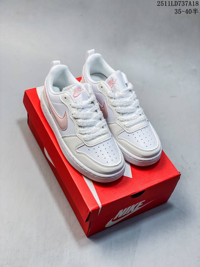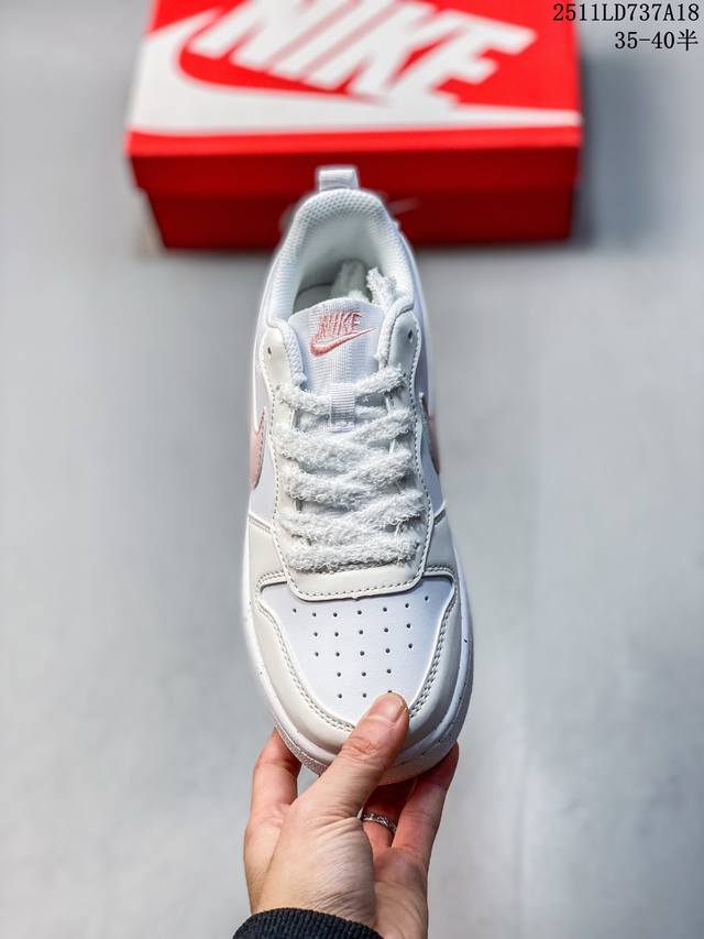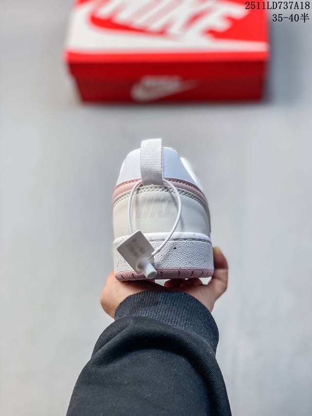 Nike Women's Court Borough Low Sneakers. 1. The leather upper combined with a mesh tongue provides stable support and improved breathability while offering a superior look and feel. The elastic insole is durable, comfortable, and enhances cushioning. 2. The Nike Court is also a relatively cost-effective shoe from Nike. The Court's silhouette is similar to the AJ1 Low, and the sole is similar to the Af1, but there are differences due to different materials and positioning. It's a good choice in terms of value. 3. This shoe features a twist point design on the outsole for smooth starts and stops and flexible grip; the Nike logo on the upper showcases the brand's value. Type: Women's Shoes Product Number: Dv5456-300 Sizes: 35-40 (including half sizes) Code: Tggt1118Ljl 11Ld737A18