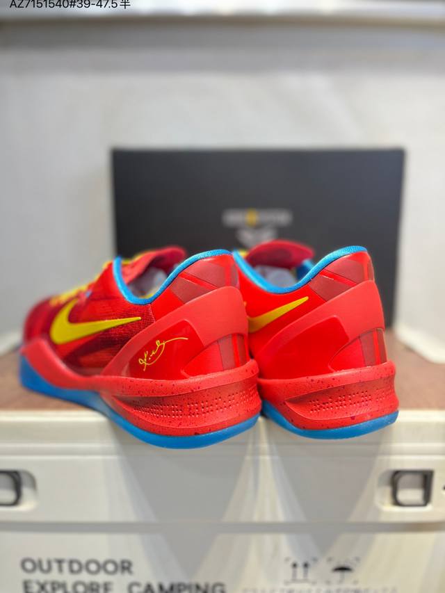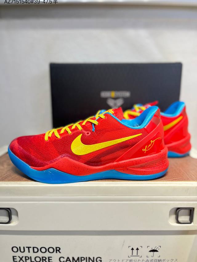 Nike Zoom Kobe VIII System Low-Top Basketball Shoes. Features an upgraded insole with an extra-thick Phylon midsole, Zoom Air units in the forefoot and heel, and a plastic carbon fiber support midsole. The Kobe Vii system's speed module, equipped with a Phylon midsole and Zoom Air units in the forefoot and heel, provides responsive cushioning. The low-top elastic collar design allows the shoe to fit snugly around the ankle for better support. The speed module features a comfortable, contoured design that conforms to the instep, eliminating the traditional tongue and inner lining for a lighter feel. 639654 Az7151540#39-47.5 Half DDD