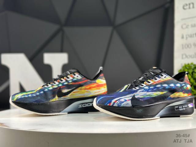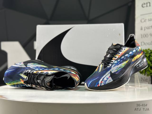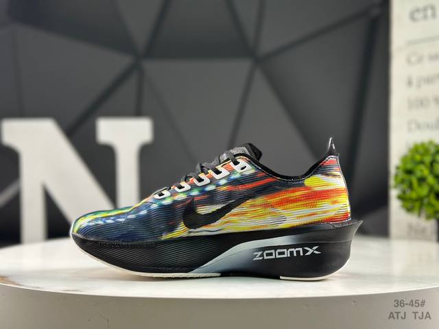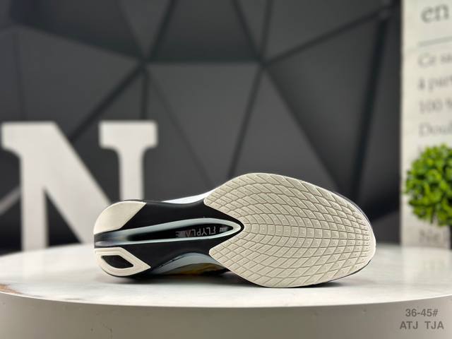 The midsole utilizes Zoomx foam and Flyplate shovel-shaped plastic carbon plate.