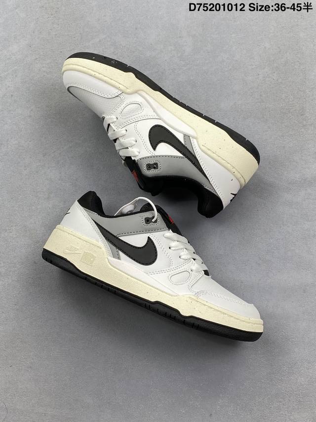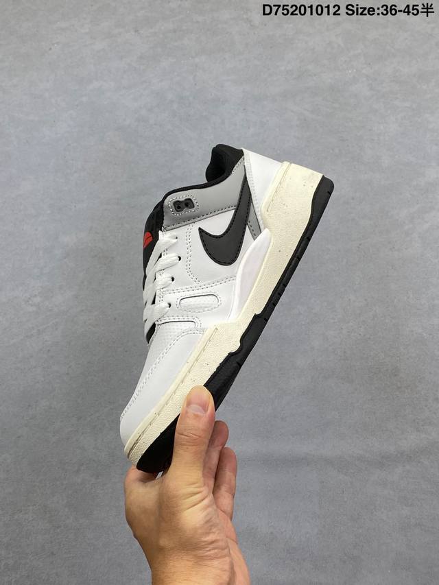 Nike's newest shoe model is here! The Nike Full Force Low is a stylish retro sneaker with an explosive retro vibe! With the rise of retro fashion in recent years, many brands have launched their own new shoe models, determined to win over even the most discerning sneaker enthusiasts. Nike recently released the Full Force model, inspired by the 1988 Air Force II. It features a simple color scheme, creating a clean and versatile look. The upper is made entirely of leather, providing a strong overall look, while perforated toe caps offer breathability for summer wear. The tongue is adorned with a large basketball graphic, highlighting the basketball DNA of the Force series. Finally, a distressed off-white midsole paired with a dark outsole completes the design. Product Code: Fb1362 105 Sizes: 36-45 (including half sizes) Code: D75201012
