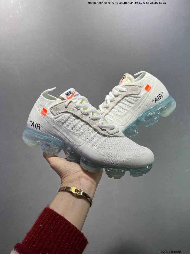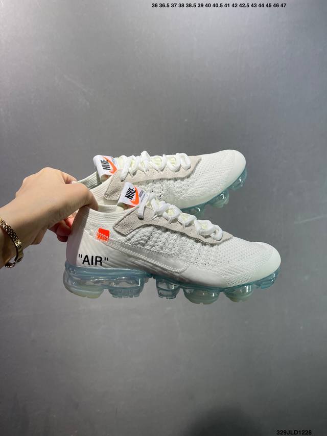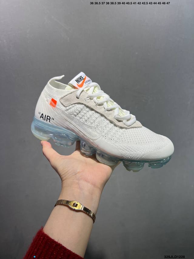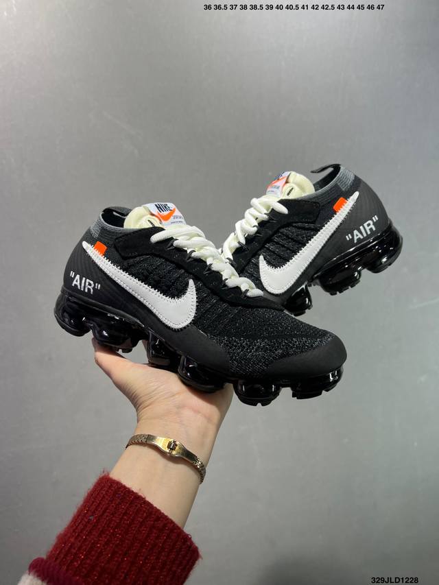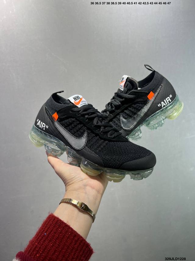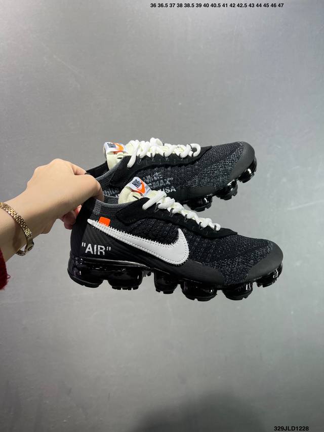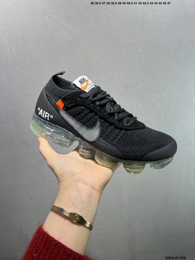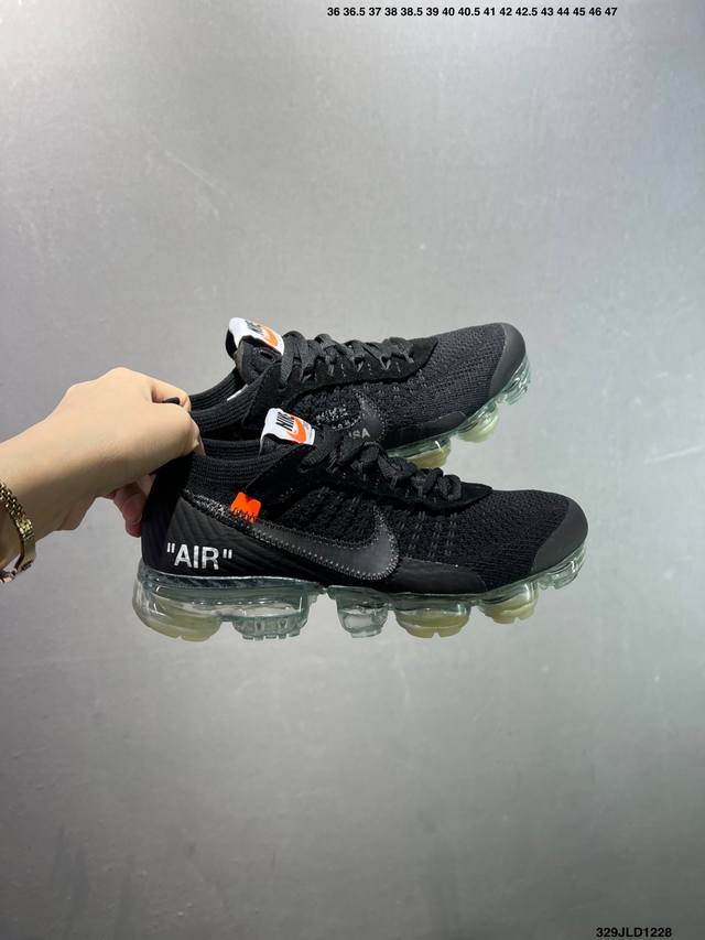 Off-White X Nike VaporMax Steam Cushion Running Shoes, meticulously developed independently. Features include nitrogen-inflated original sole cushioning, original high-frequency lettering (distinguishing it from commercially available printed fonts), and a perfect shoe shape. Product Code: Aa3831-001. Size: 36/47.5.5. ID: 329Jld1228