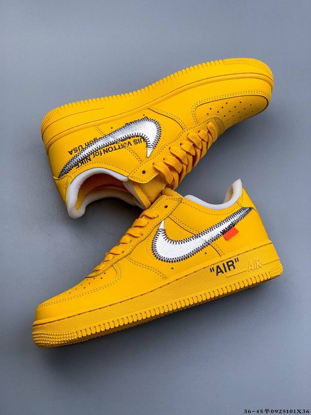 Original last and original data paper version, made of hard, high-quality leather upper material, built-in full-length Air Sole cushioning. Off-White x Nike Air Force 1 Ow joint Air Force One low-top fashion casual sneakers