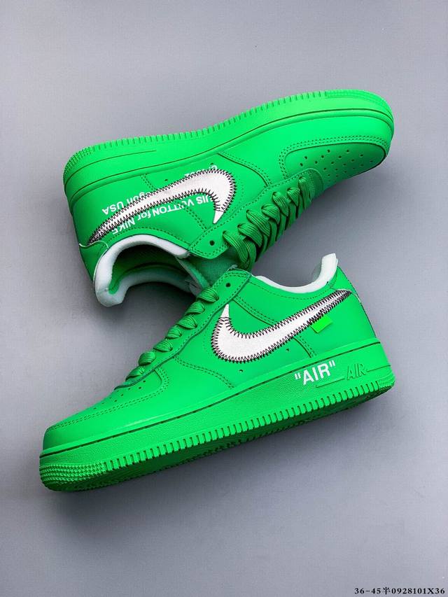 Original last and original data paper version, made of hard, high-quality leather upper material, built-in full-length Air Sole cushioning. Off-White x Nike Air Force 1 Ow joint Air Force One low-top fashion casual sneakers