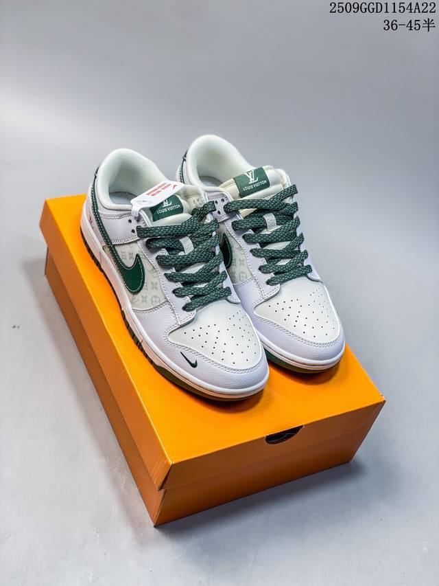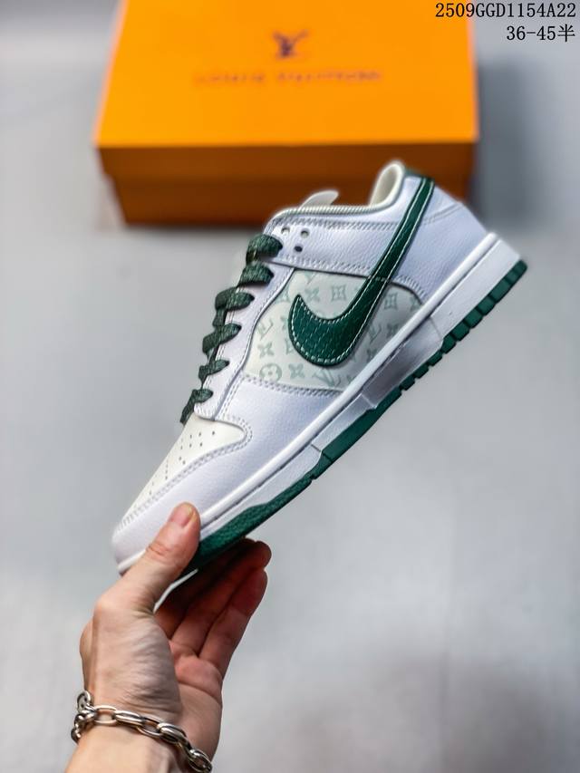 Overseas hit limited edition! High-end customized Nike SB Dunk Low "LV joint white and green" high-end customized low-top casual sneakers customized shoe box large factory pure original quality shipment ultra-high cleanliness leather cut cleanly without any burrs details perfect item number: Hs 6-214 Size: 36 36.5 37.5 38 38.5 39 40 40.5 41 42 42.5 43 44 44.5 45