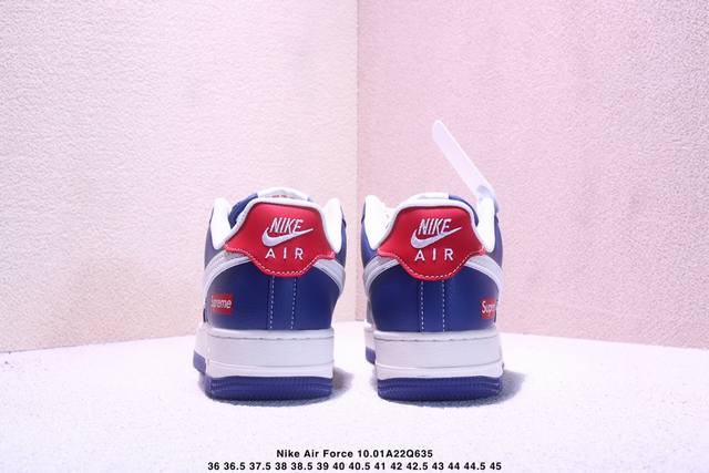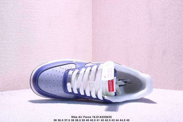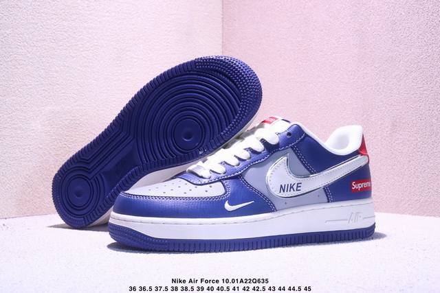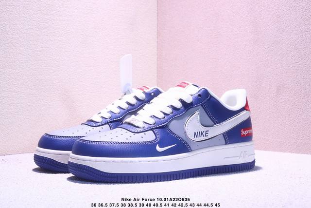 Overseas hit limited edition sale! High-end customized Nike Air Force 1 '07 Low "Superme joint------ white, blue, gray and red" Nike printed high-end customized low-top casual sneakers customized shoe box large factory pure original quality shipment ultra-high cleanliness leather cut cleanly without any burrs details perfect