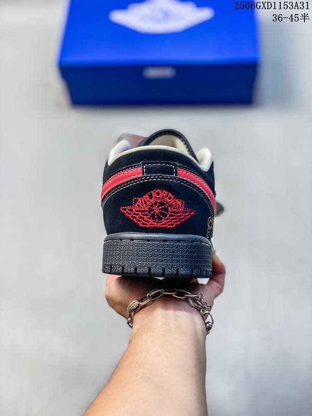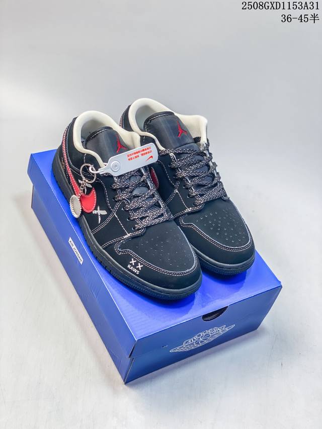 Overseas hit limited edition sale! Nike Jordan Air Jordan 1 "Kaws co-branded black and red" high-end customized low-top retro shock-absorbing, non-slip and wear-resistant basketball shoes, custom shoe box, large factory pure original quality shipment, ultra-high cleanliness, leather cut cleanly without any burrs, perfect details
