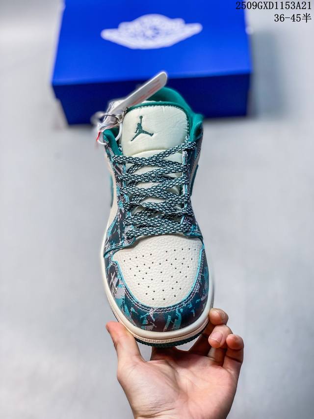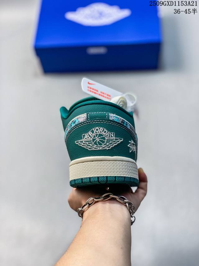 Overseas hit limited edition sale! Nike Jordan Air Jordan 1 "Stussy co-branded wild green" high-end custom low-top retro shock-absorbing non-slip wear-resistant basketball shoes custom shoe box large factory pure original quality shipment ultra-high cleanliness leather cut cleanly without any burrs perfect details