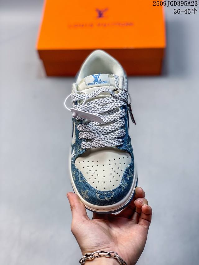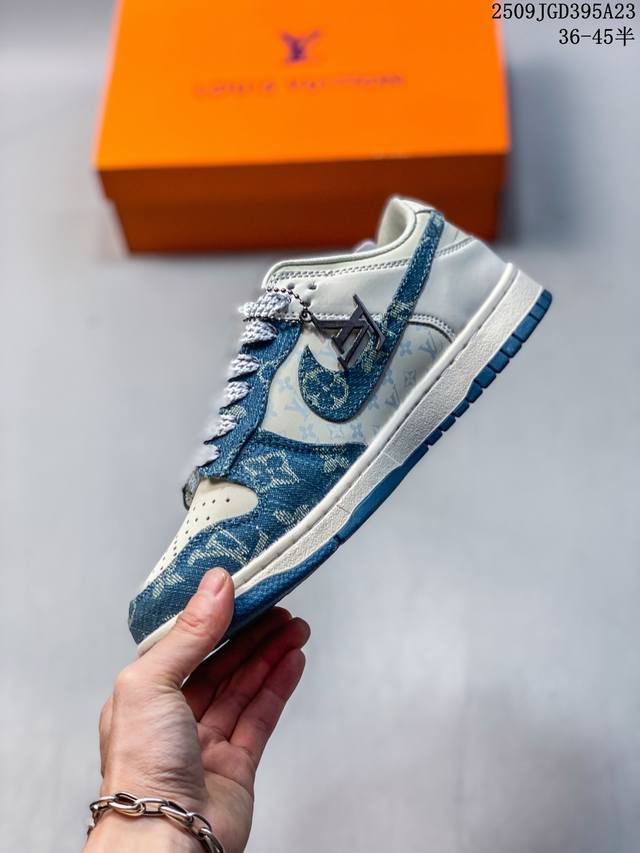 Overseas hit limited sale! Company-level Nike Sb Dunk Low "Lv Series Denim Blue Hook" Anniversary high-end customized low-top casual sneakers customized shoe box large factory pure original quality shipment ultra-high cleanliness leather cut cleanly without any burrs details perfect