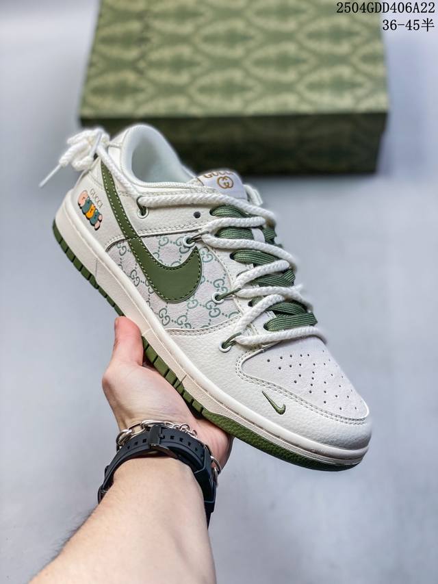 Overseas Hit Limited Sale! Corporate-Level Nike Sb Dunk Low "Gucci Co-Branded Beige Green Flower Arrangement" Anniversary High-End Customized Low-Top Casual Sneakers Customized Shoe Box Large Factory Pure Original Quality Shipment Ultra-High Cleanliness Leather Cut Clean Without Any Burrs Perfect Details