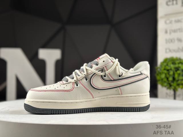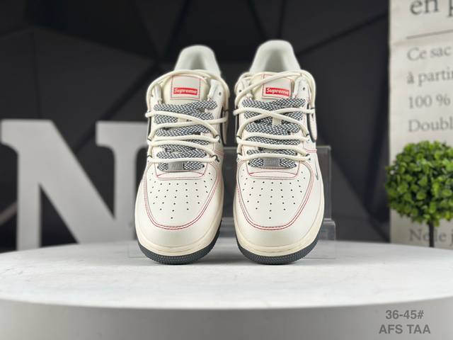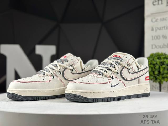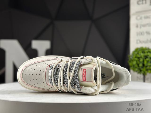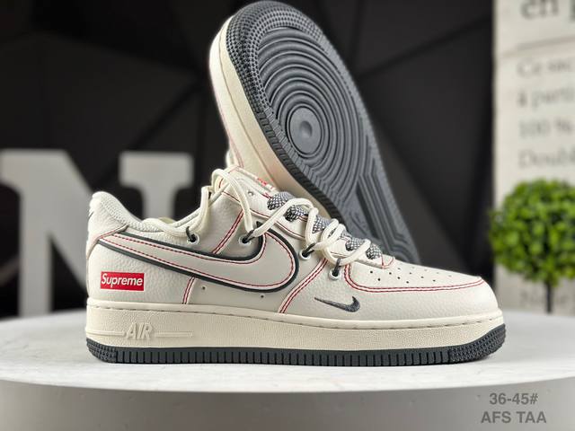 Company-level Nike Air Force 1 '07 Low "Supreme co-branded red line gray bottom" Air Force One low-top sports shoes casual shoes with difficult hemming and sewing process. Original last, original cardboard, original shoe box, customized hardware accessories, built-in full-palm air cushion, original sole