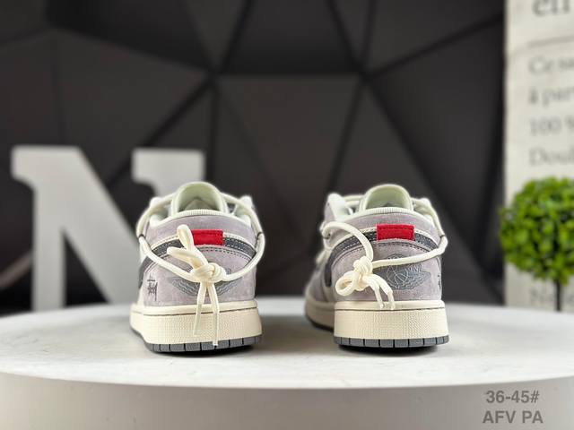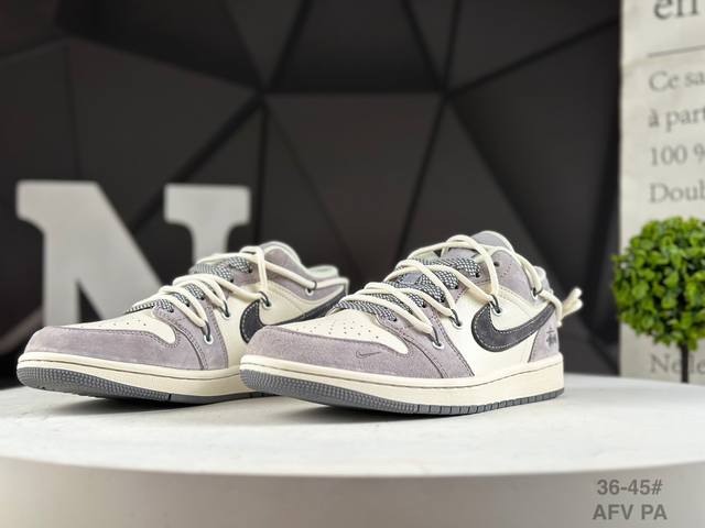 : Corporate-grade Nike Stussy x Air Jordan 1 Low with Black Hook Drawstring. This model transcends the constraints of traditional industrial assembly line design. Embracing the ultra-creative Made By Ideas philosophy, we've collaborated with numerous trendsetting designers and combined them with the latest trends to create exclusive pieces for fashion lovers that truly express their individuality. At the same time, we respect every young person's understanding and choice of fashion, advocating "letting each young person shape their own trends."