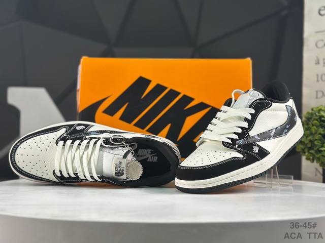 Special Offer! Nike Travis Scott X Fragment Design X Jordan Air Jordan 1 Low Og Sp. This multi-brand collaboration features Scott's unique musical style, Hiroshi Fujiwara's distinctive design style, and classic Jordan brand elements, making it a shoe with a unique identity and value. The fresh and three-dimensional appearance, coupled with the collaborative logo, further highlights its unique identity. This color scheme displays vitality and fashion, making it visually eye-catching. The texture and delicate details of the shoe body give it a high-end and stylish look. This "Reverse Swoosh" collaboration is a perfect combination of design and creativity, blending the individual styles of multiple parties. It's a highly anticipated trendy low-top casual sneaker. Custom shoe box, high-quality original from a large factory, extremely clean, with clean leather cutting and no rough edges, perfect details. Product Number: Jw1188 153. Sizes: 36, 36.5, 37.5, 38, 38.5, 39, 40, 40.5, 41, 42, 42.5, 43, 44. 44.5 45 Aca Tta